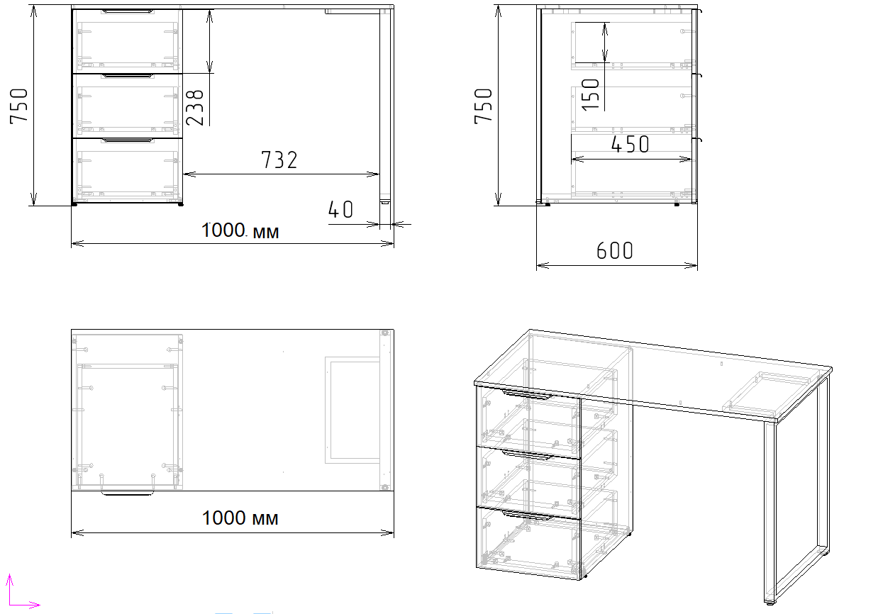 Дно ящиков прочное - выполнено из ЛДСП 16 мм (не ДВП, не ХДФ!)
