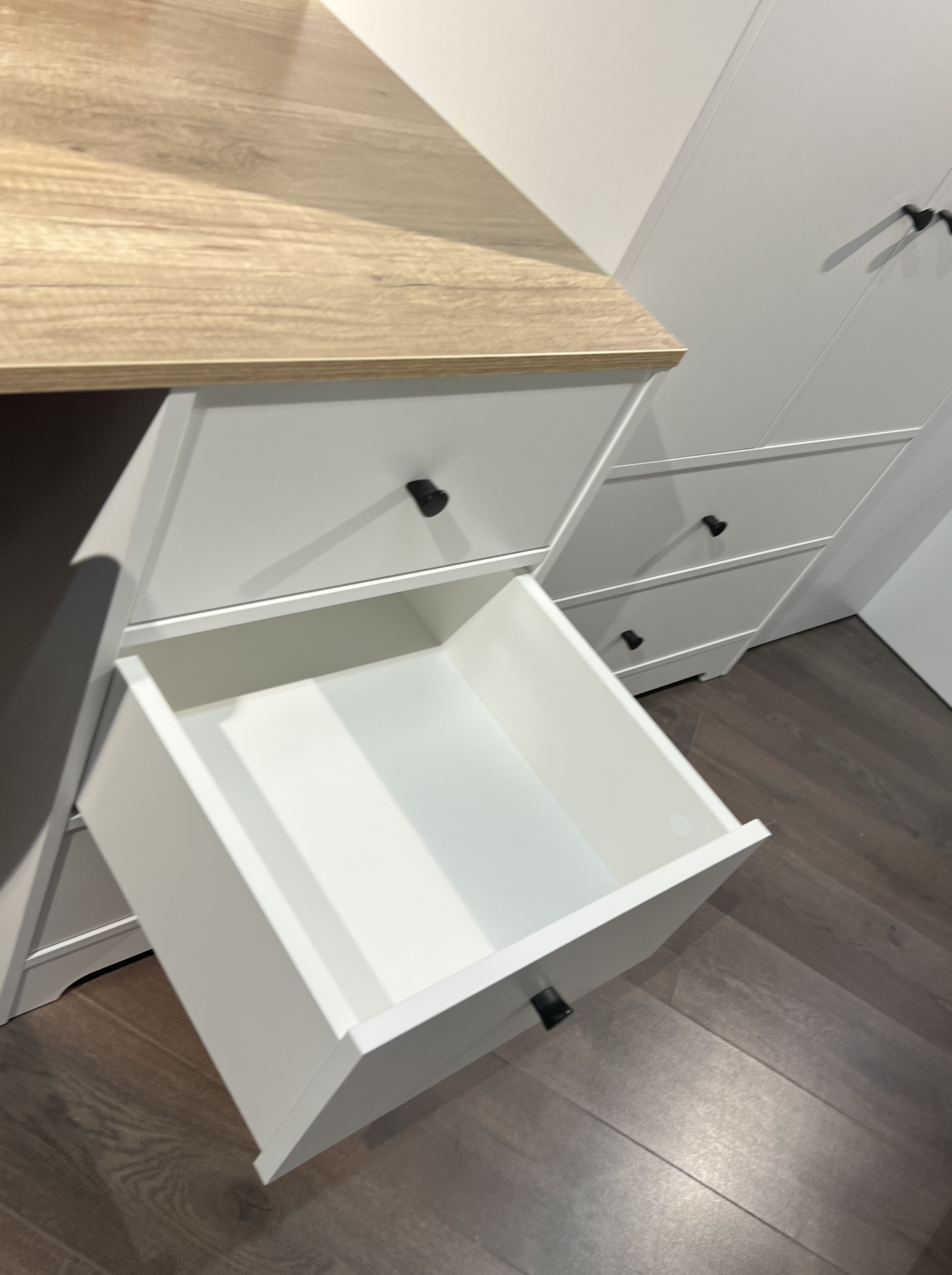 Доводчики, направляющие скрытого монтажа. Дно ящиков прочное - выполнено из ЛДСП 16 мм (не ДВП!)