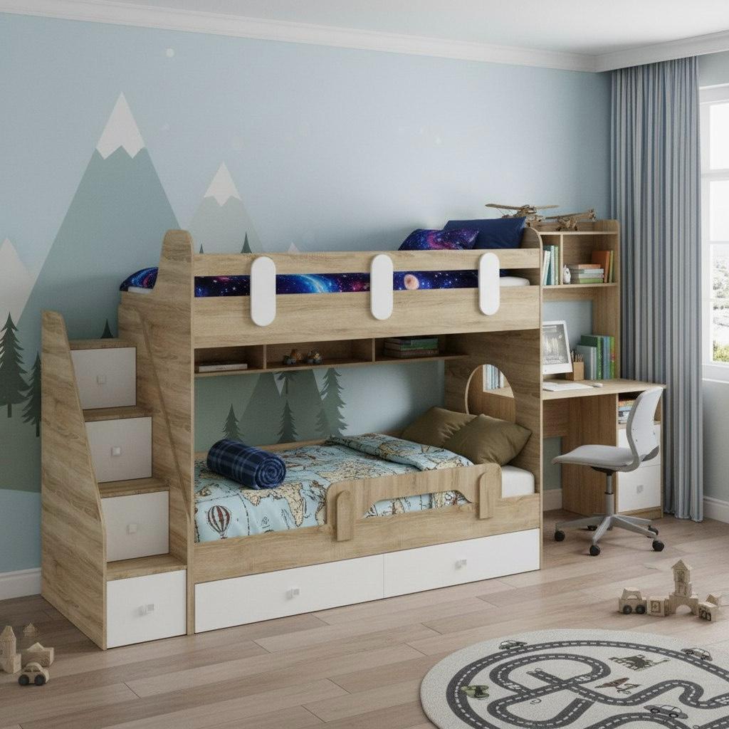 Двухъярусная кровать Фортуна-2 с удобной лестницей, высоким, безопасным бортиком и комфортной высотой.