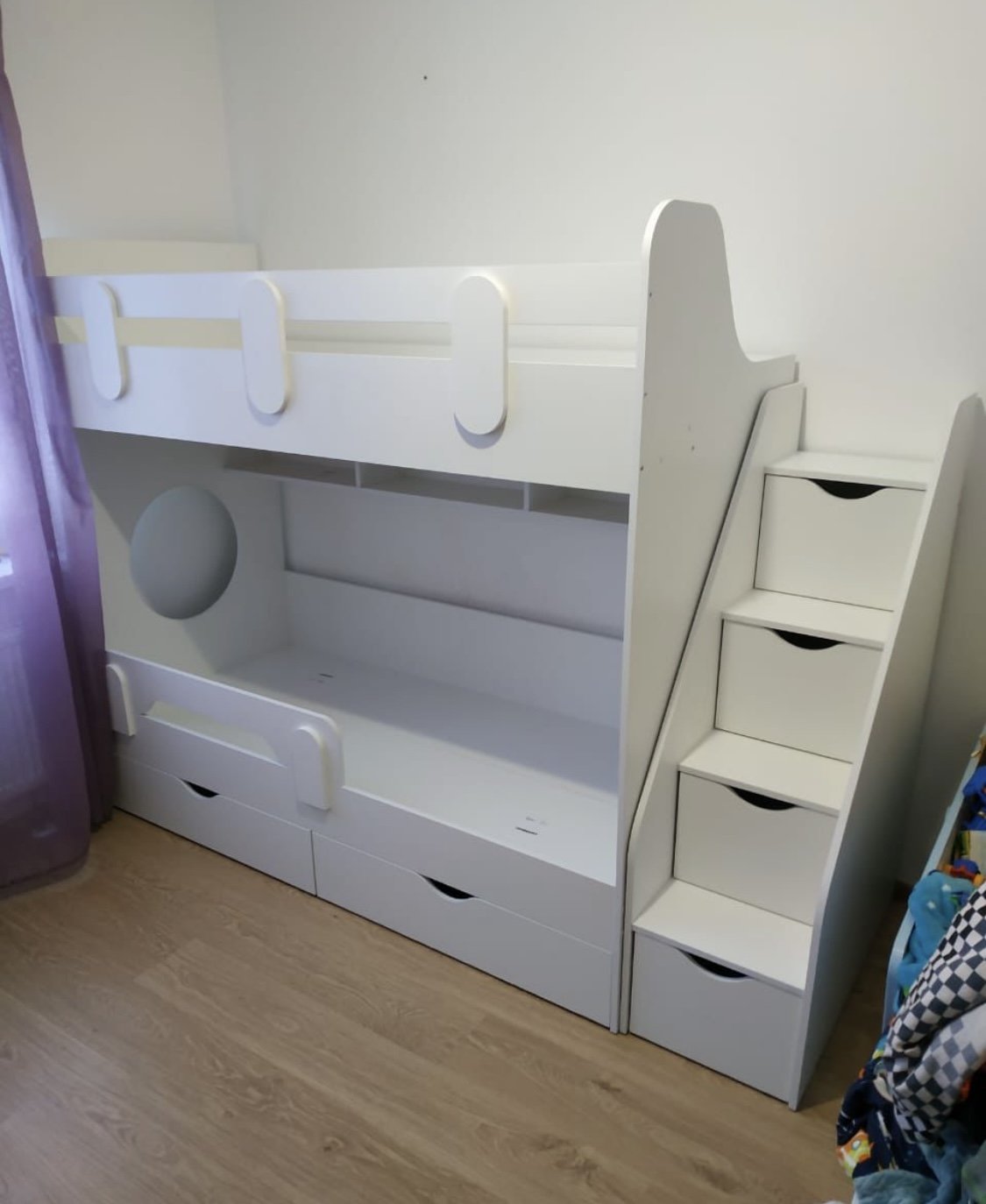 Основание кровати – прочный настил ЛДСП (НЕ РЕЙКИ!), который позволяет ребенку спать на ровной поверхности, что важно для детской спины.