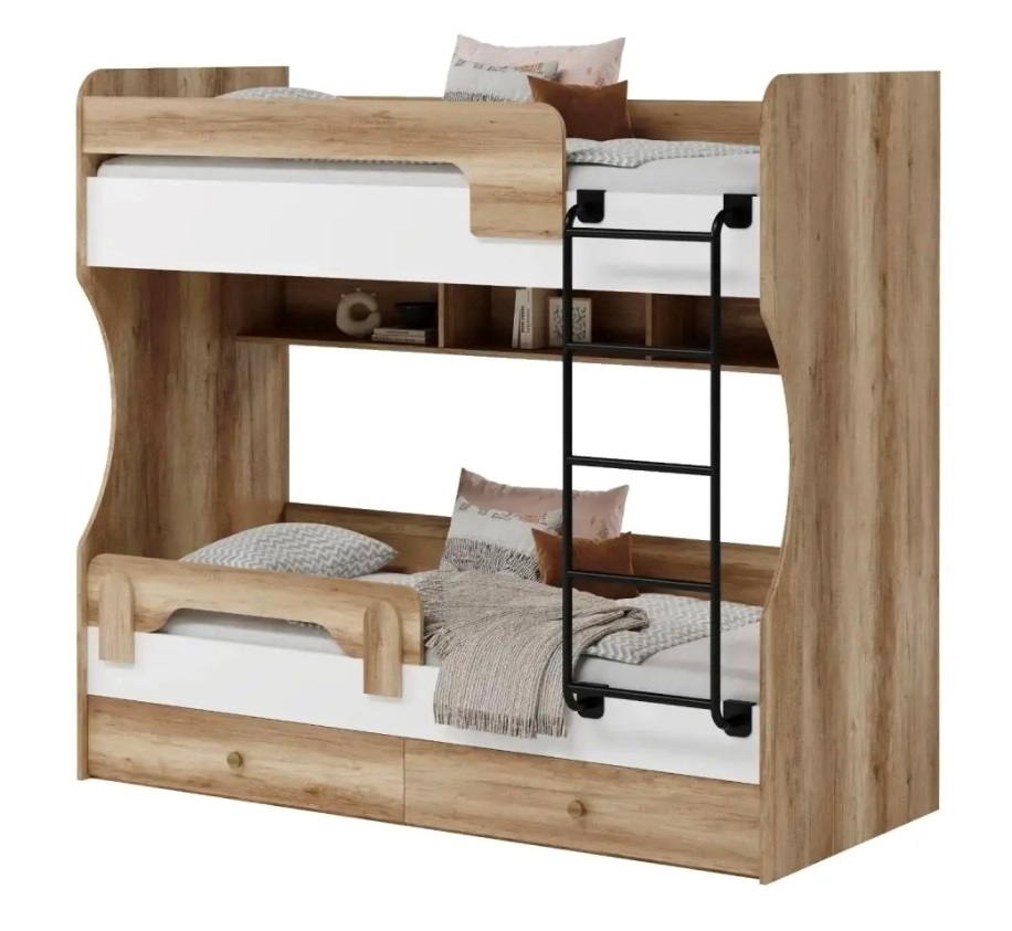 Наша двухъярусная кровать "Омега" с фронтальной лестницей - это то, что вам нужно!