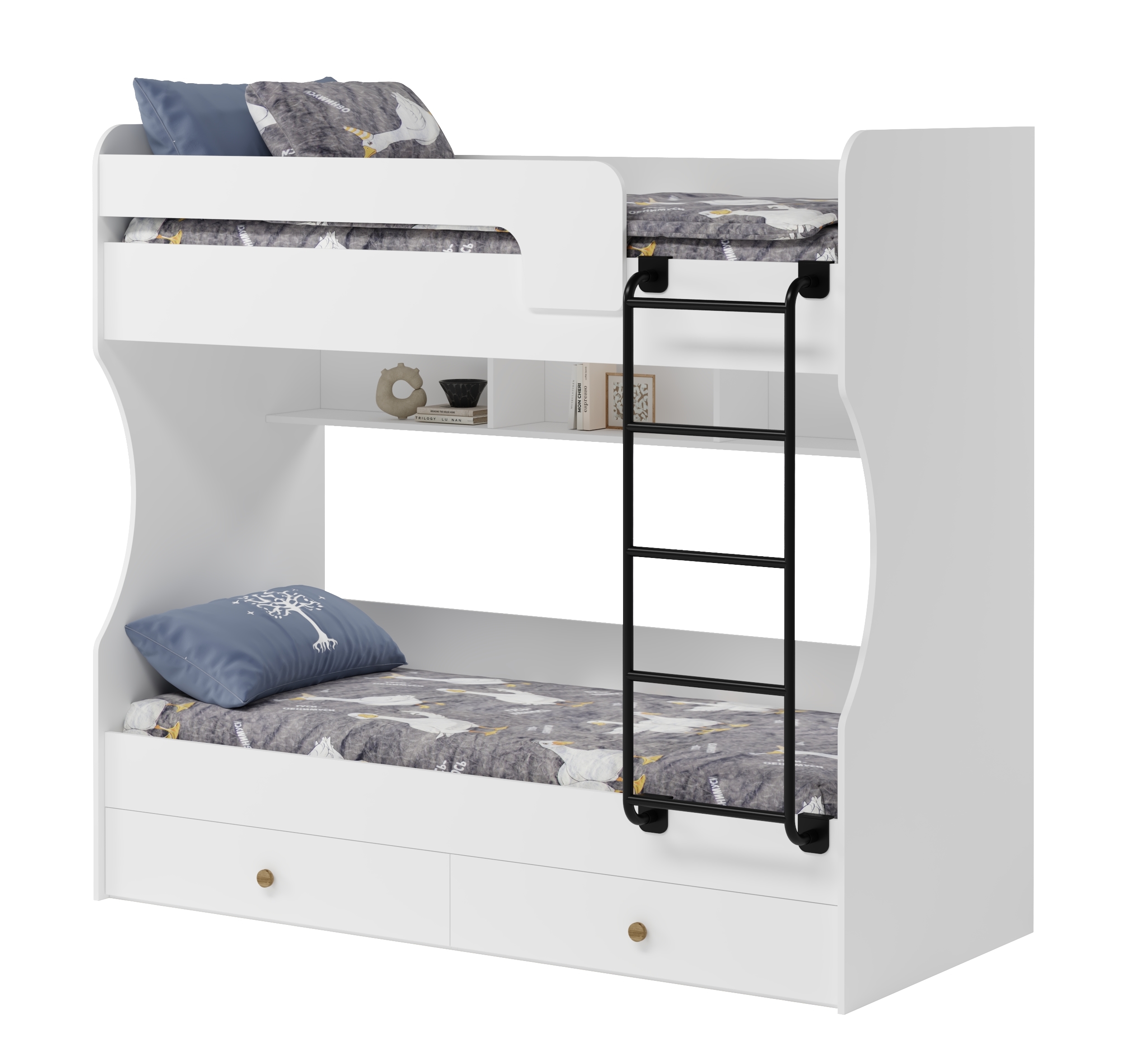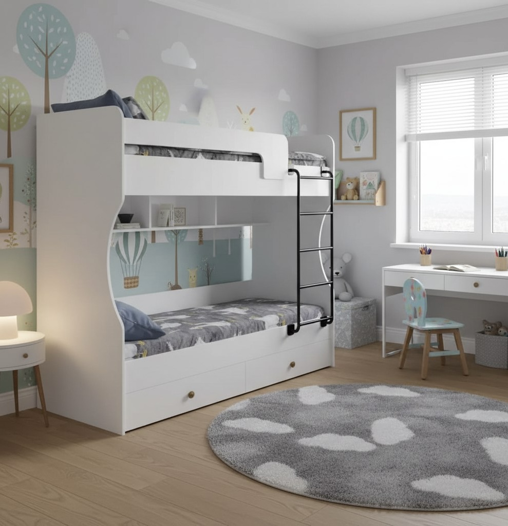 Двухъярусная кровать в белом цвете идеальна для любых интерьеров.