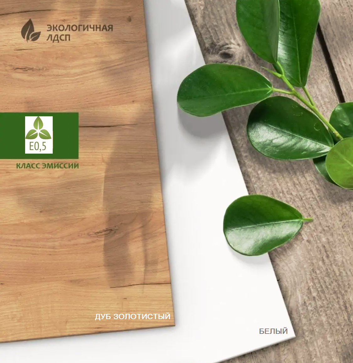 ЛДСП Е0,5. Толщина 16 мм. Цвет: дуб золотистый + белый