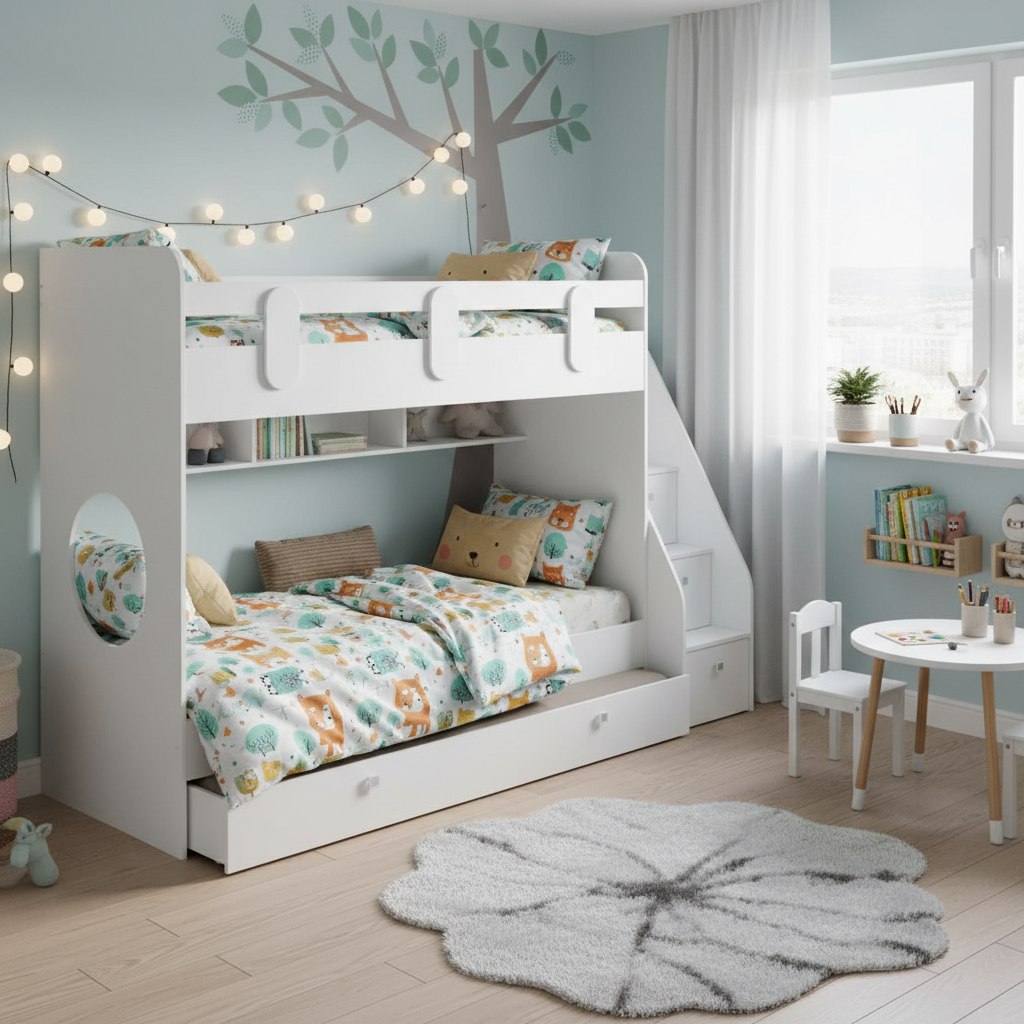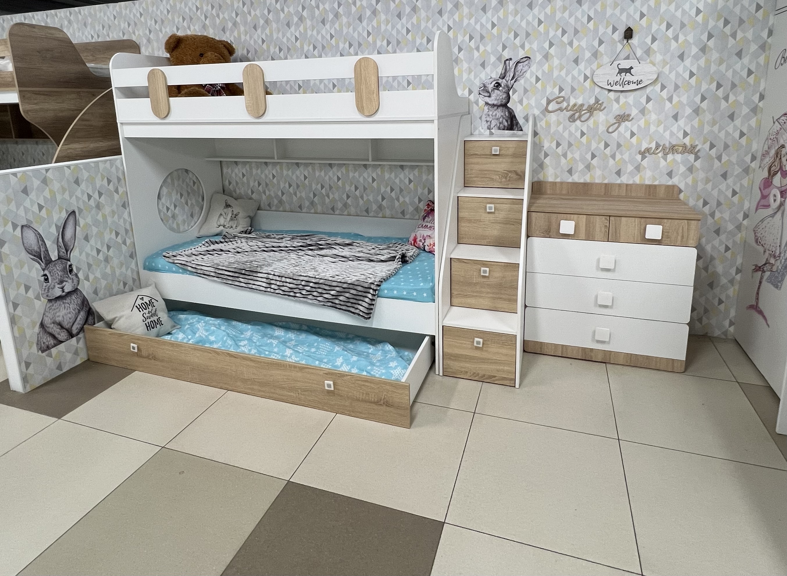 Вместо них - цельный и прочный настил из ЛДСП, который выдерживает сверхвысокую нагрузку и позволяет расположиться даже взрослому с ребенком.