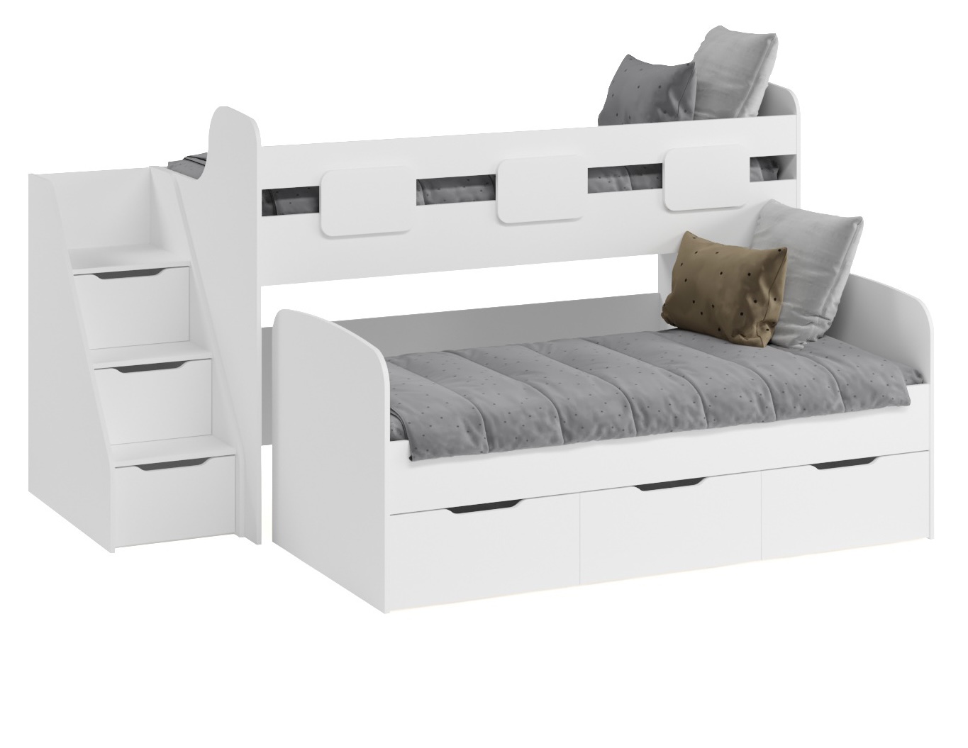 - Невысокая конструкция кровати обеспечивает удобный доступ на второй этаж, делая её идеальной даже для самых маленьких детей.