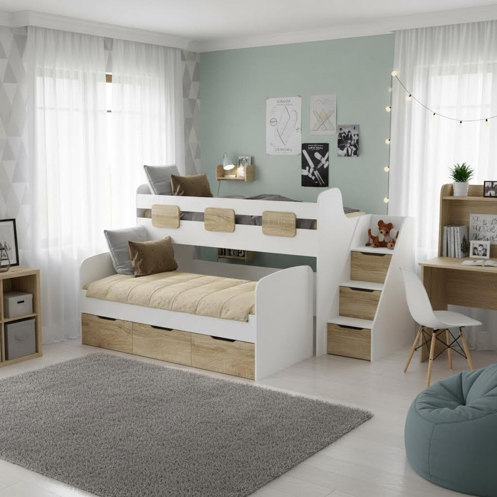 Ваше Уютное Пространство с нашей популярной двухъярусной кроваткой "Городок"!