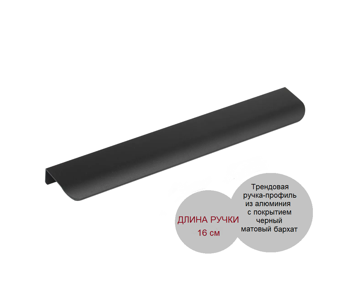 Трендовые ручки-профиль из алюминия с отделкой черный матовый бархат. Длина ручки 16 см. |