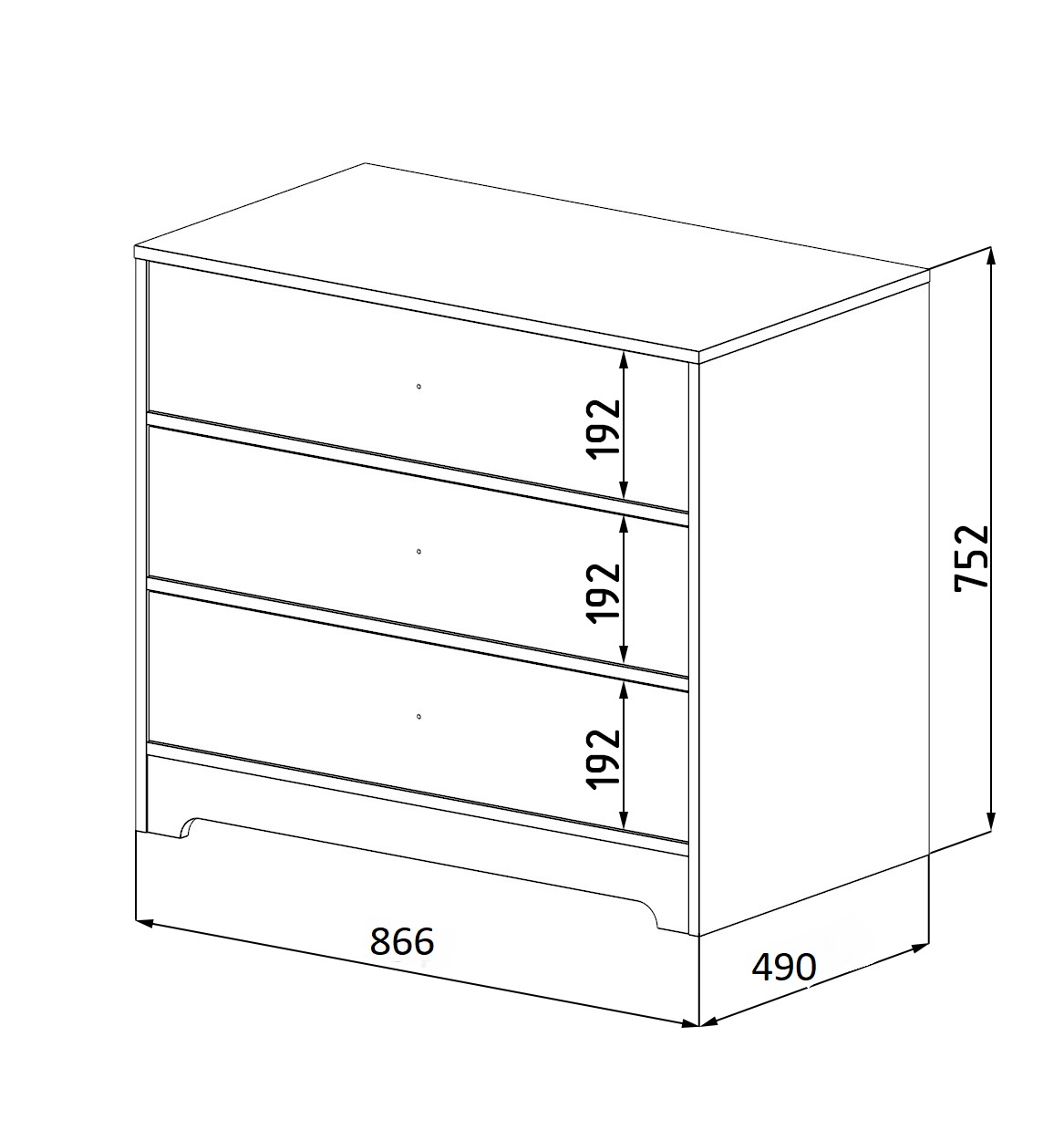 Габариты комода: ширина 866, глубина 490, высота 752 мм