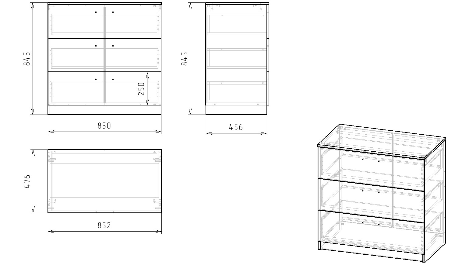 Габариты комода: ширина 852 х высота 845 х глубина 476 мм