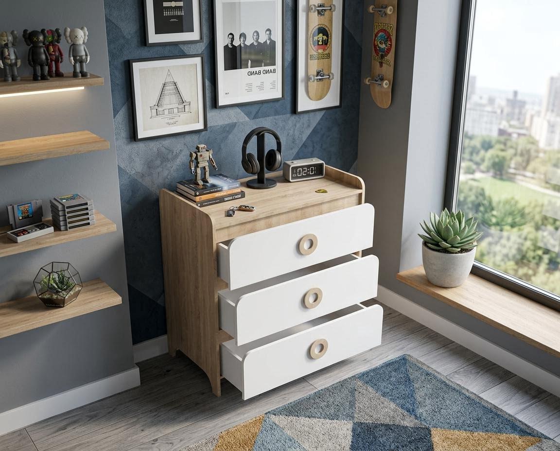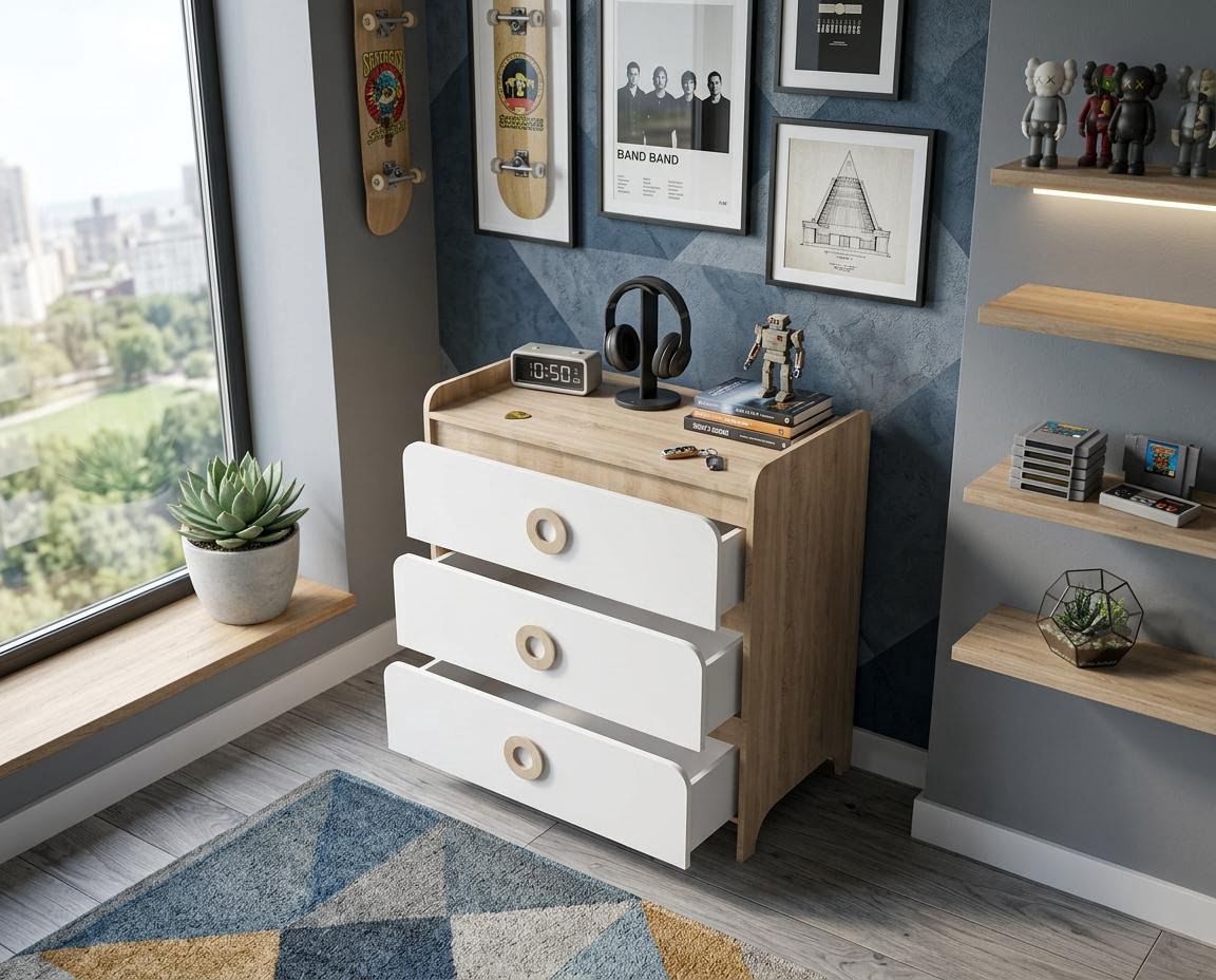 —Комод коллекции Юниор (дуб сонома + белый)