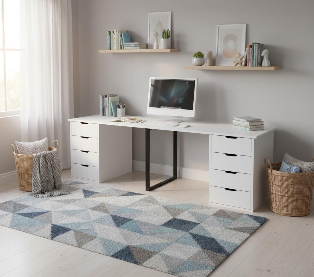 Стол Дуэт 2400 мм (белый + опоры черные). Столешница 22 мм от Династия Kids