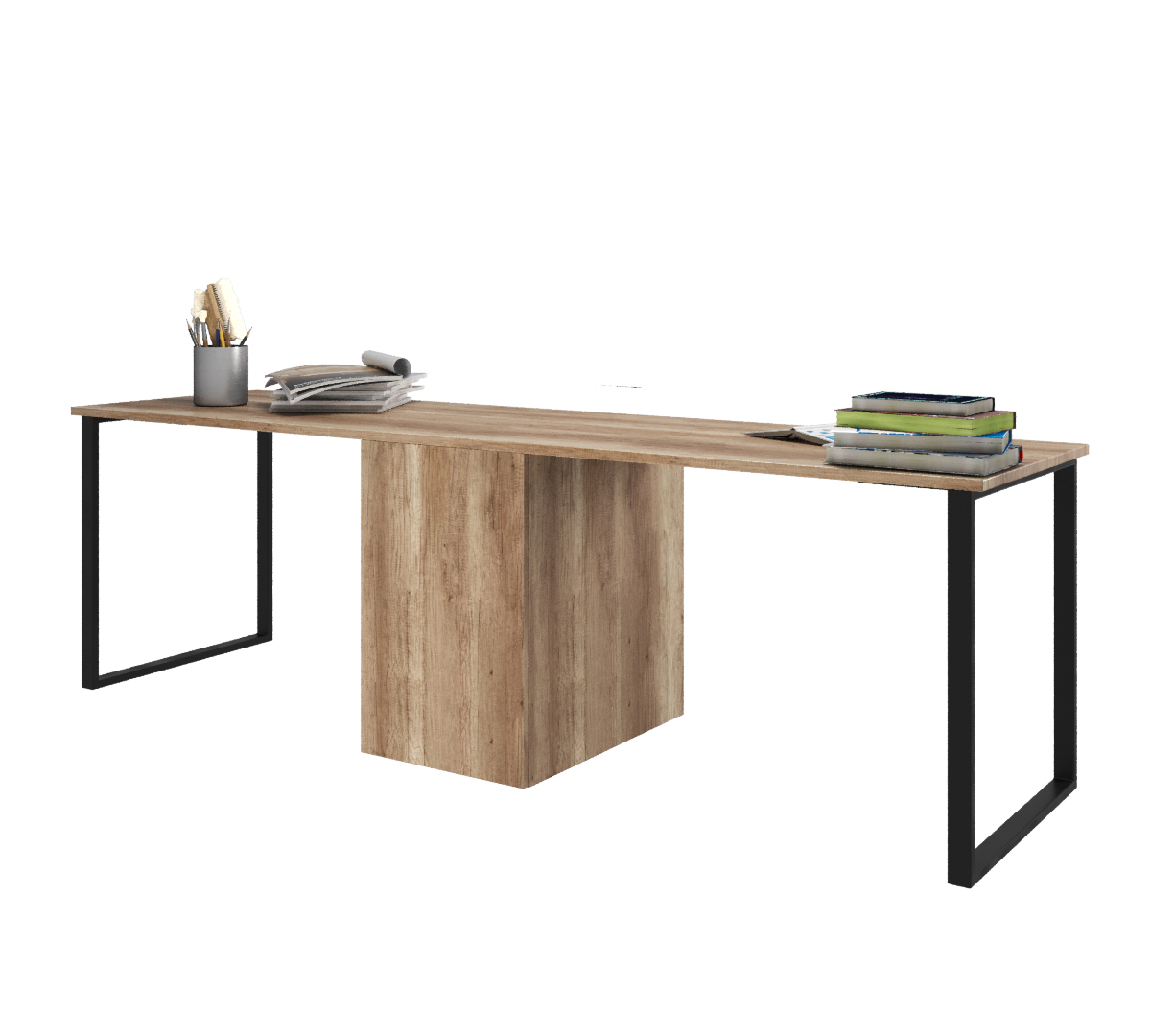 —Стол Дуэт 2400 мм (дуб каньон + опоры черные). Столешница 22 мм