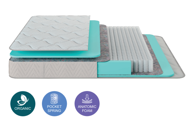 Матрас средней жесткости на независимом пружинном блоке Pocket Spring.