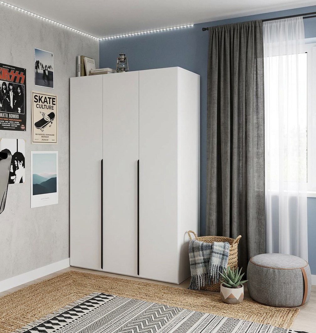 Трехдверный распашной шкаф коллекции мебели Брайт - функциональное решение для хранения одежды, обуви и аксессуаров.
