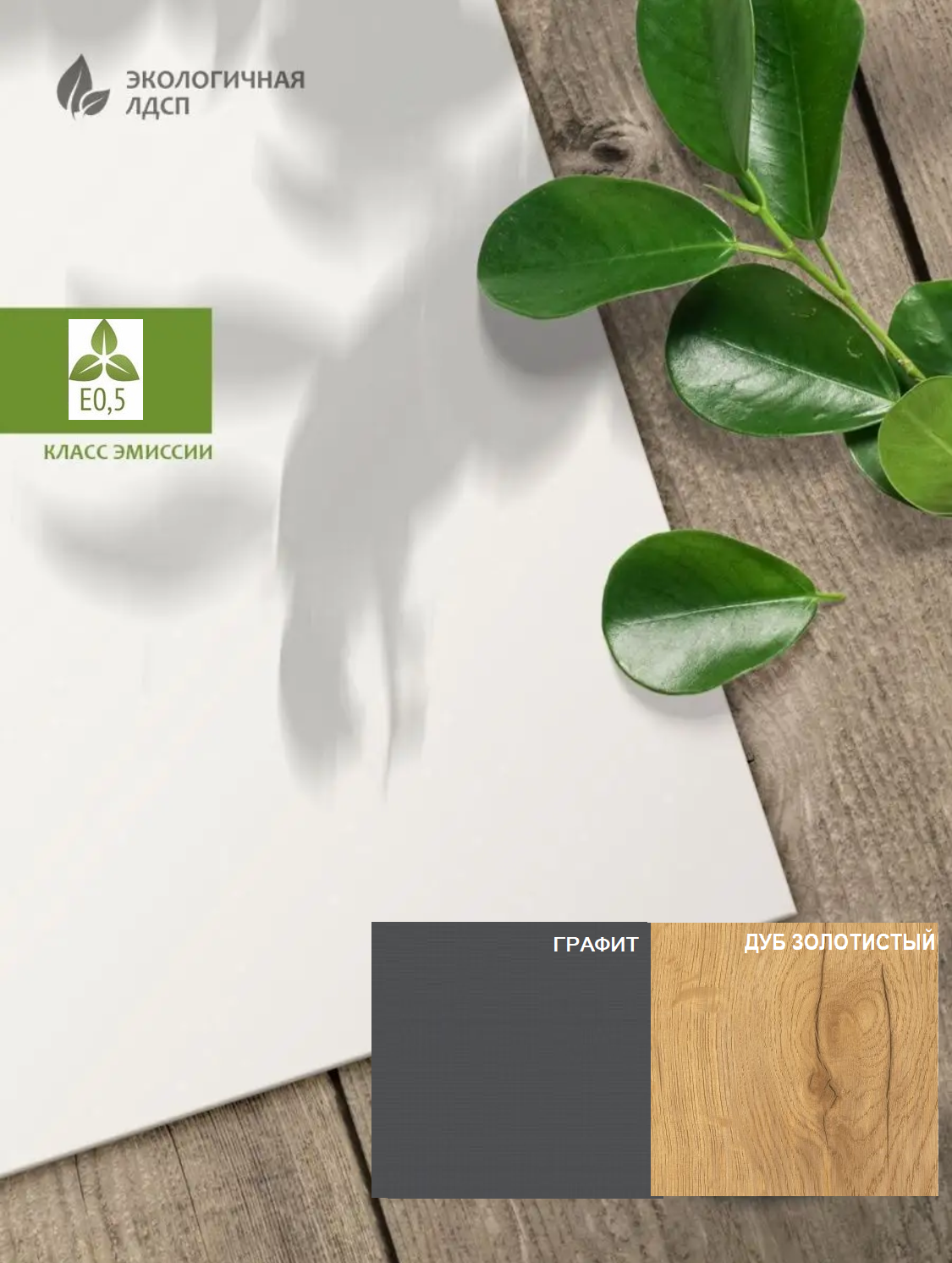 ЛДСП Е0,5. Толщина 16 мм. Доступна в цветах: корпус белый + фасады графит, корпус белый + фасады дуб золотистый, корпус дуб золотистый + фасады графит, полностью белый или полностью велюр