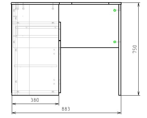 Габариты стола: ширина 1160 х высота 750 х глубина 890 мм