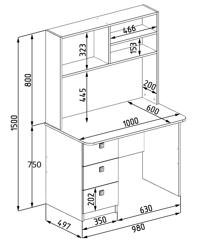 Габариты стола: ширина 1000 х высота до столешницы 750 х глубина 600 мм