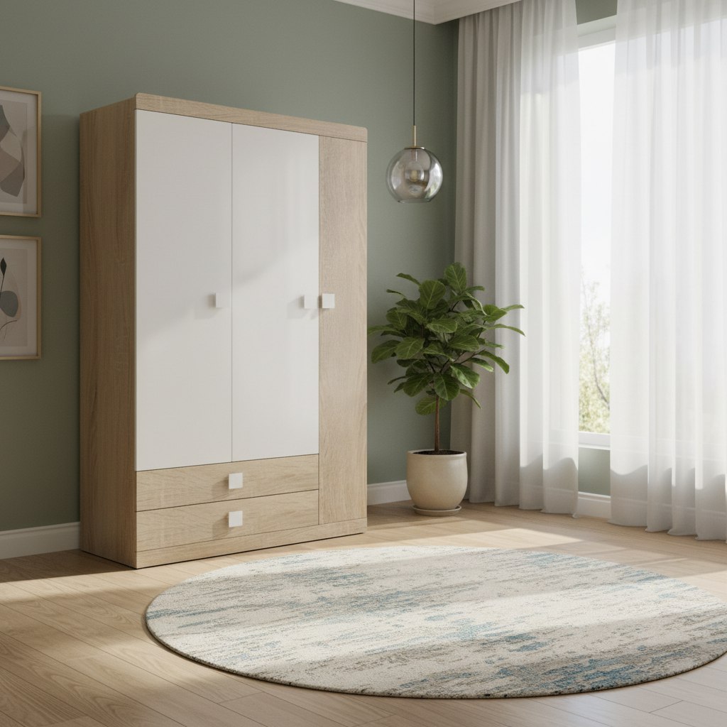 Оттенок натурального дерева "дуб сонома" дает ощущение комфорта и единения с природой, а воздушный белый цвет в интерьере работает как основа для ярких штрихов.