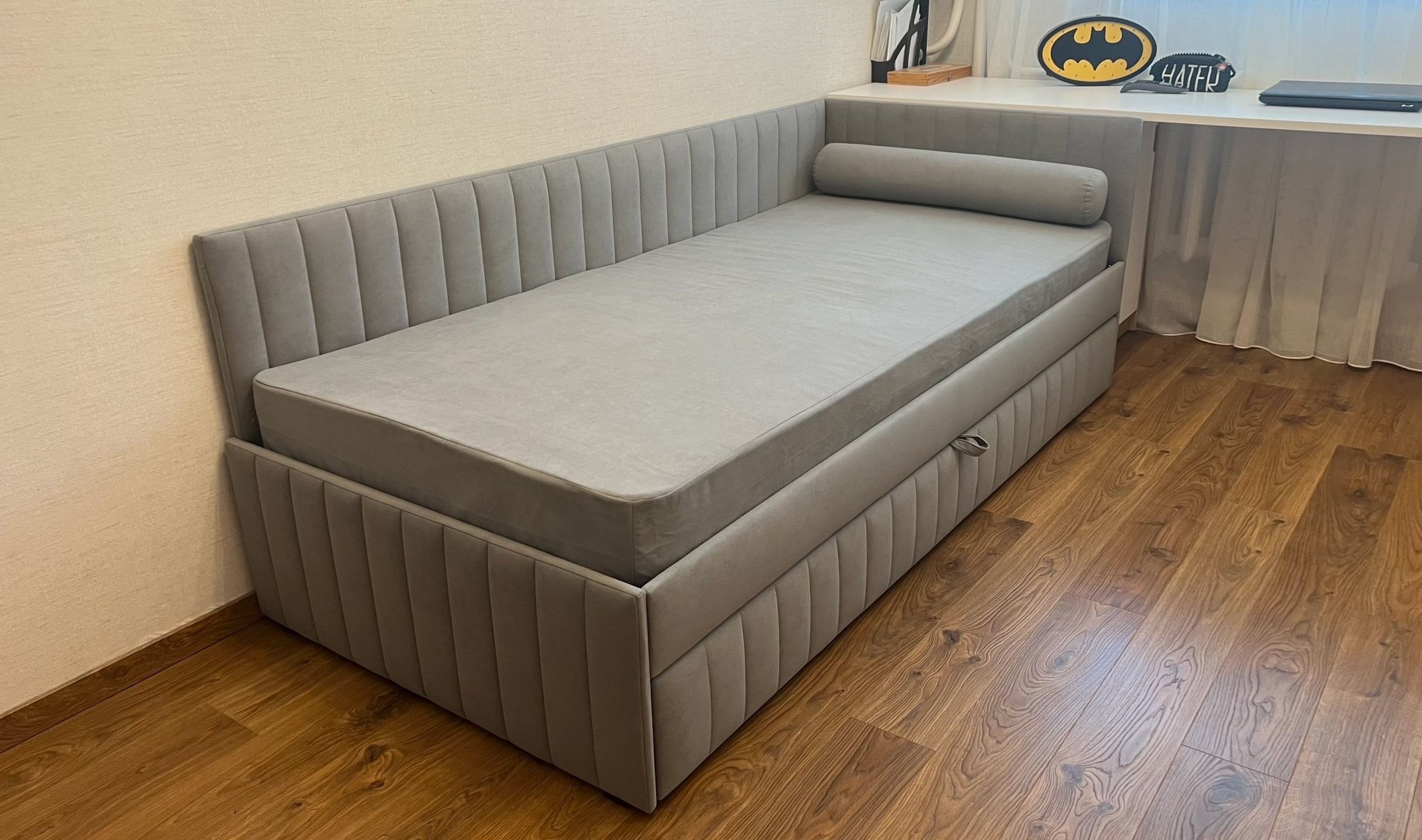 Компактная угловая кровать Софт станет отличным вариантом мебели для комнаты подростка.