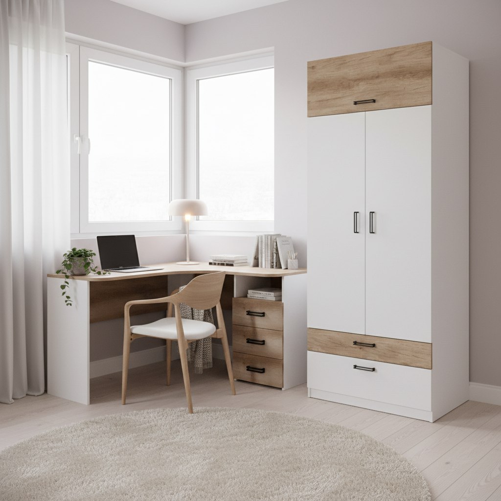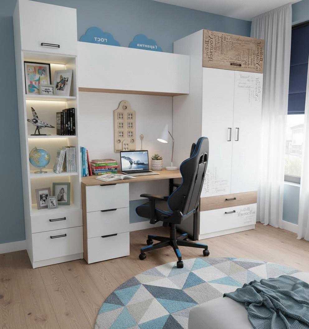Идеально вписывается в детскую комнату, шкаф очень практичный и вместительный, по своим габаритам отлично подходит и для небольших комнат.