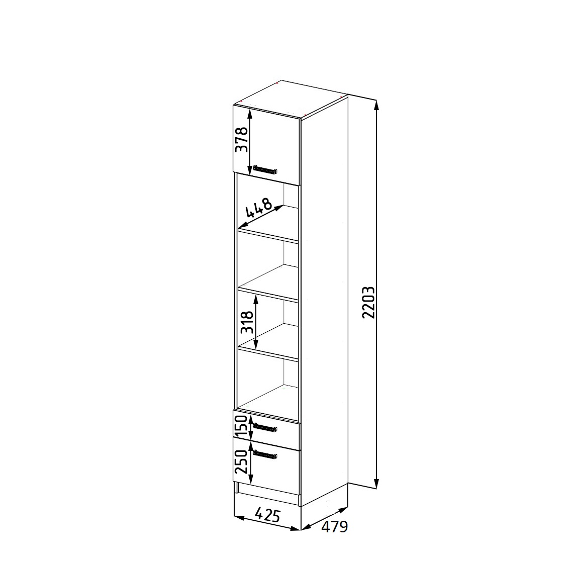 Габариты: ширина 425 х высота 2203 х глубина 479 мм