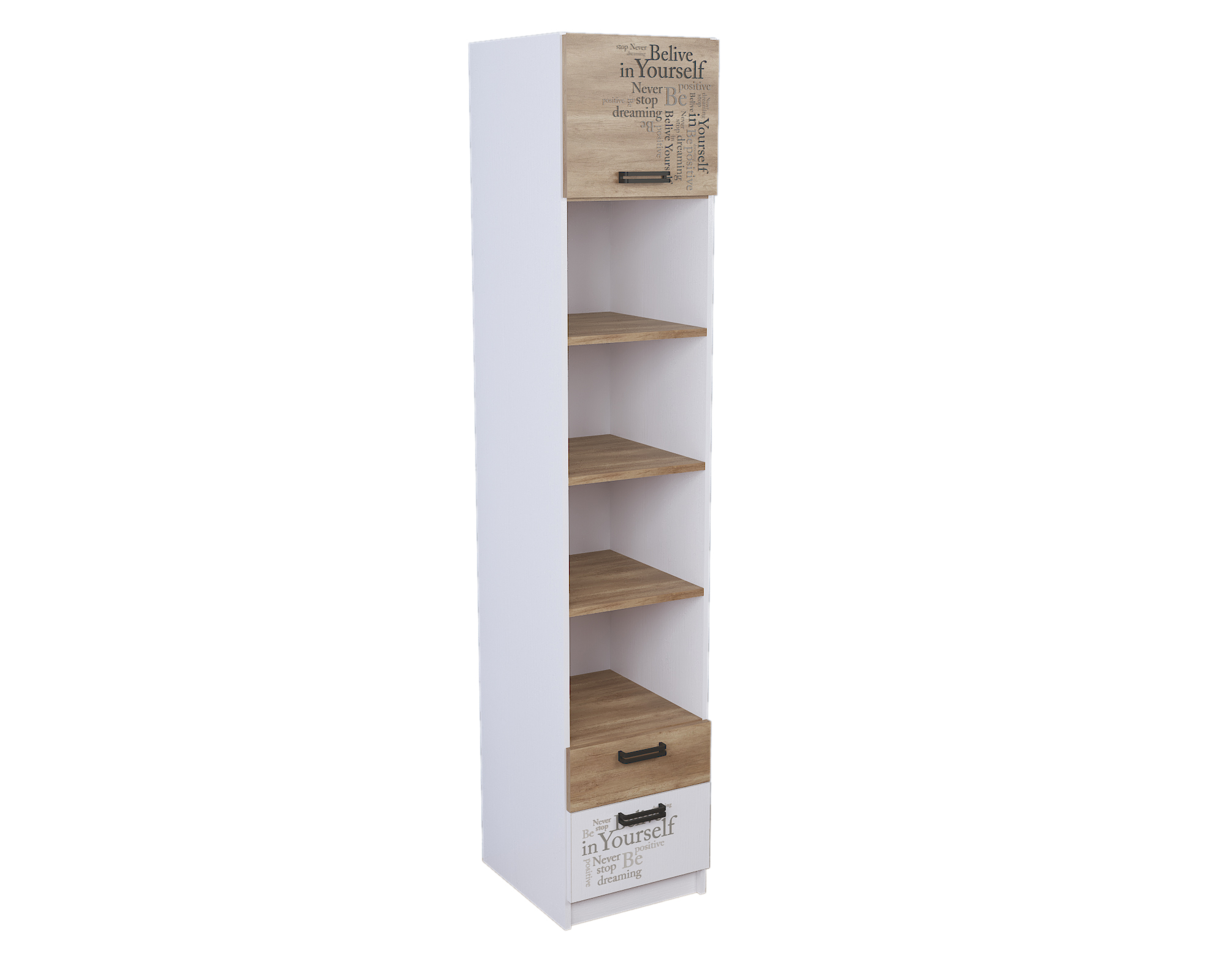 Мебель выполнена из сертифицированного, качественного, экологически чистого ЛДСП Е0,5 в сочетании цветов "дуб каньон + белый" и оформлена принтом.