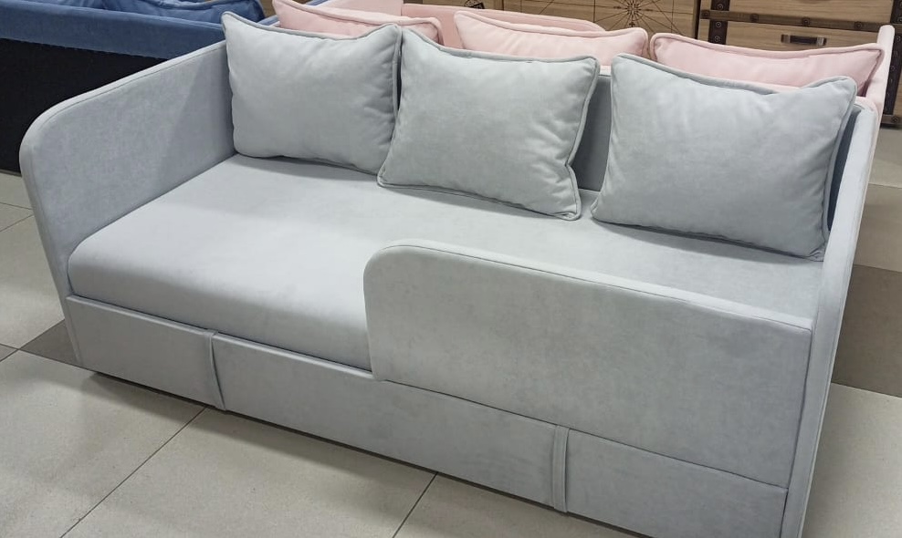 Диванчик подойдет и для самых маленьких деток, так как имеет защитный бортик.