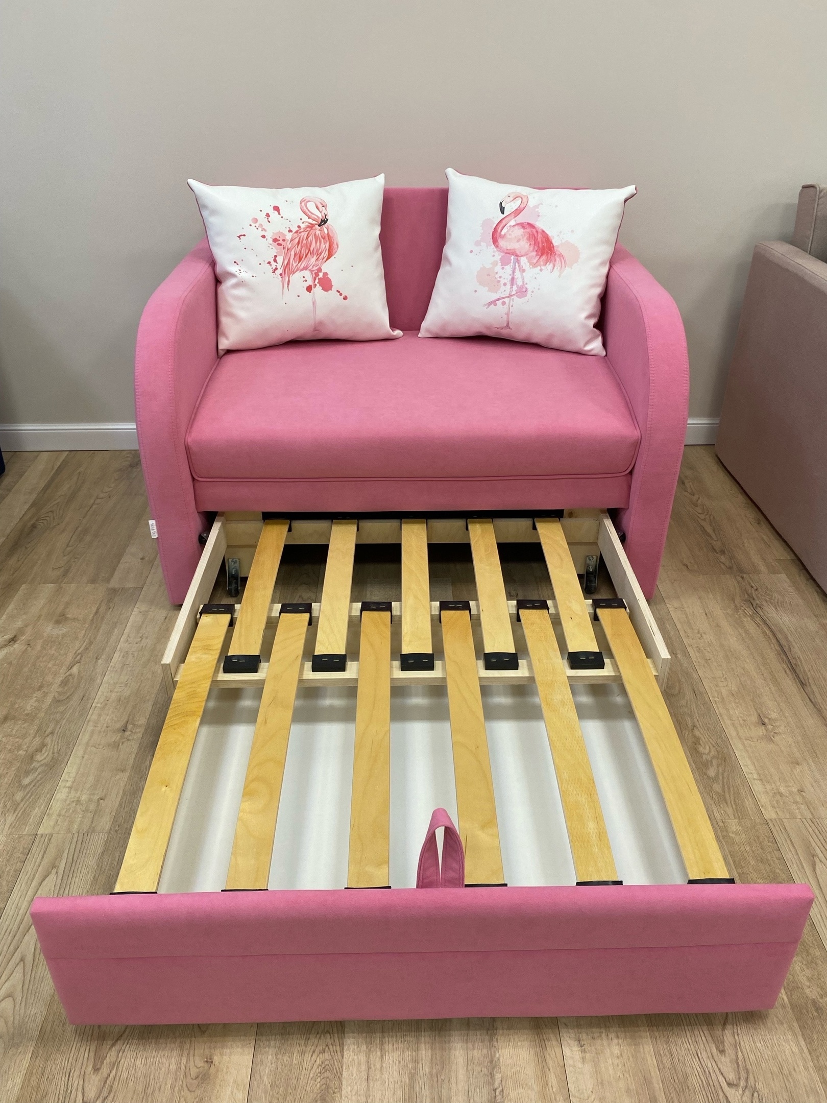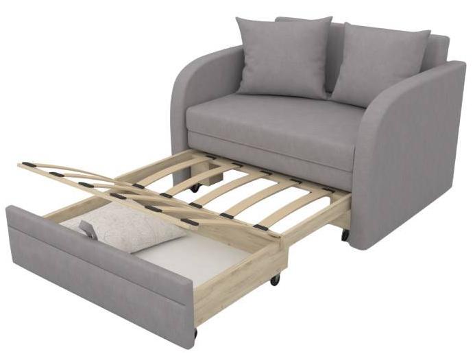 Диван можно быстро трансформировать в удобную кровать с помощью специального выкатного механизма.