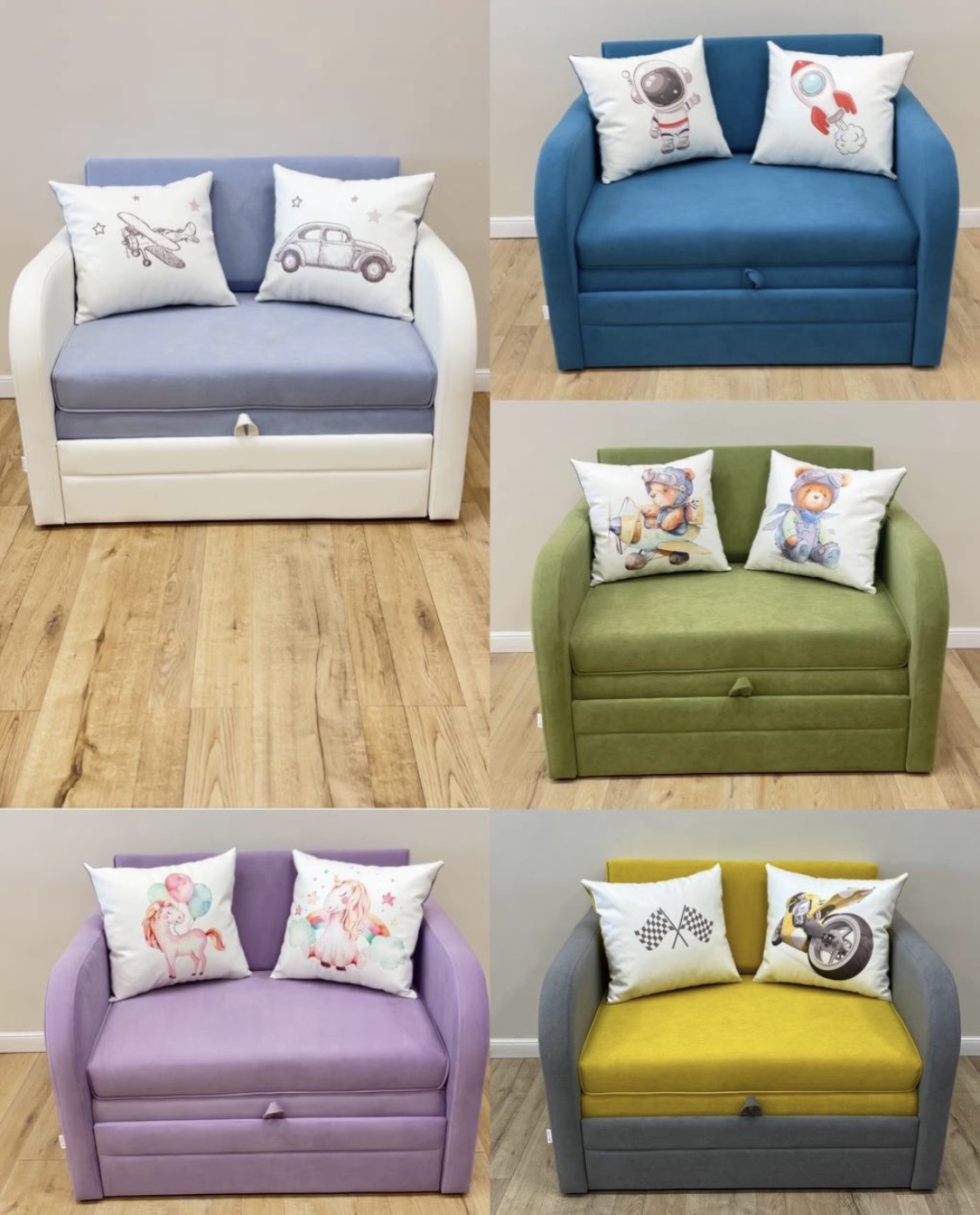 Благодаря большому разнообразию расцветок и видов тканей вы сможете подобрать подходящий к детской комнате цвет дивана.