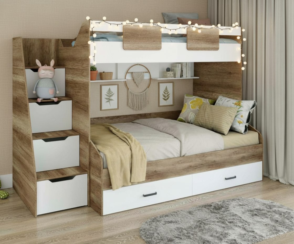 Высокая нагрузка на спальные места. Дно всех выдвижных ящиков прочное - выполнено из ЛДСП 16 мм (не ДВП!) |