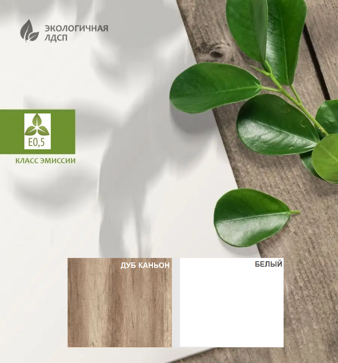 ЛДСП Е0,5. Толщина 16 мм. Цвет дуб каньон+белый