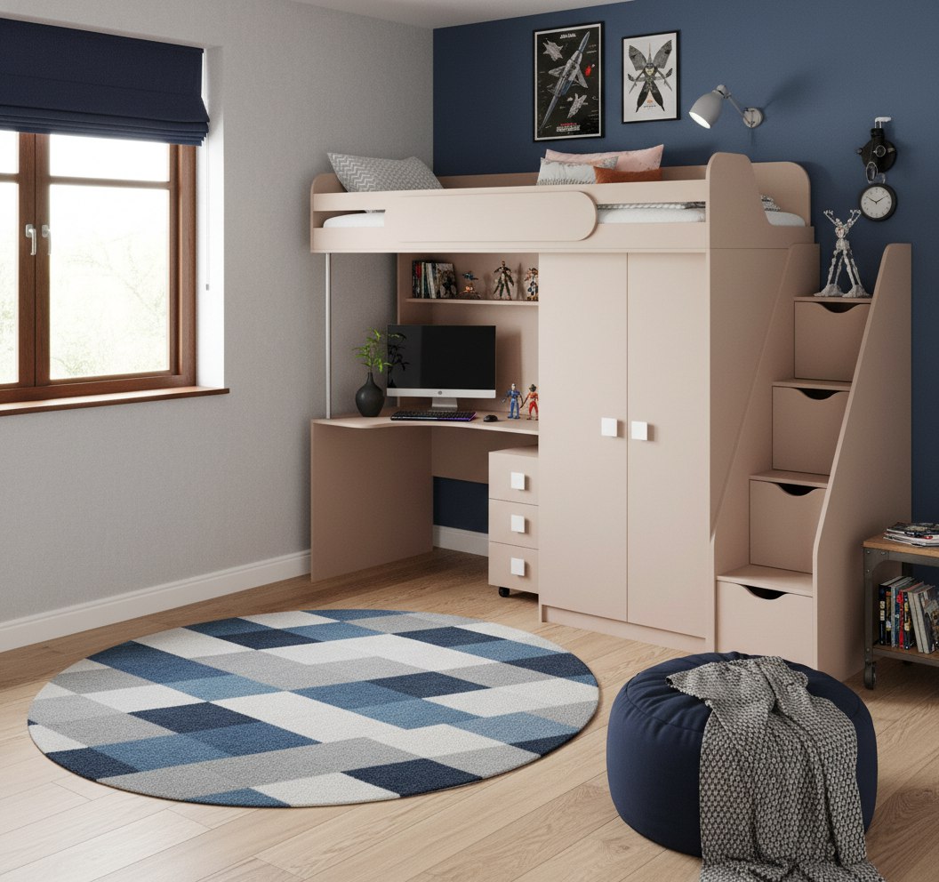 Кровать-чердак с рабочим пространством и шкафом – идеальное решение для детской комнаты.