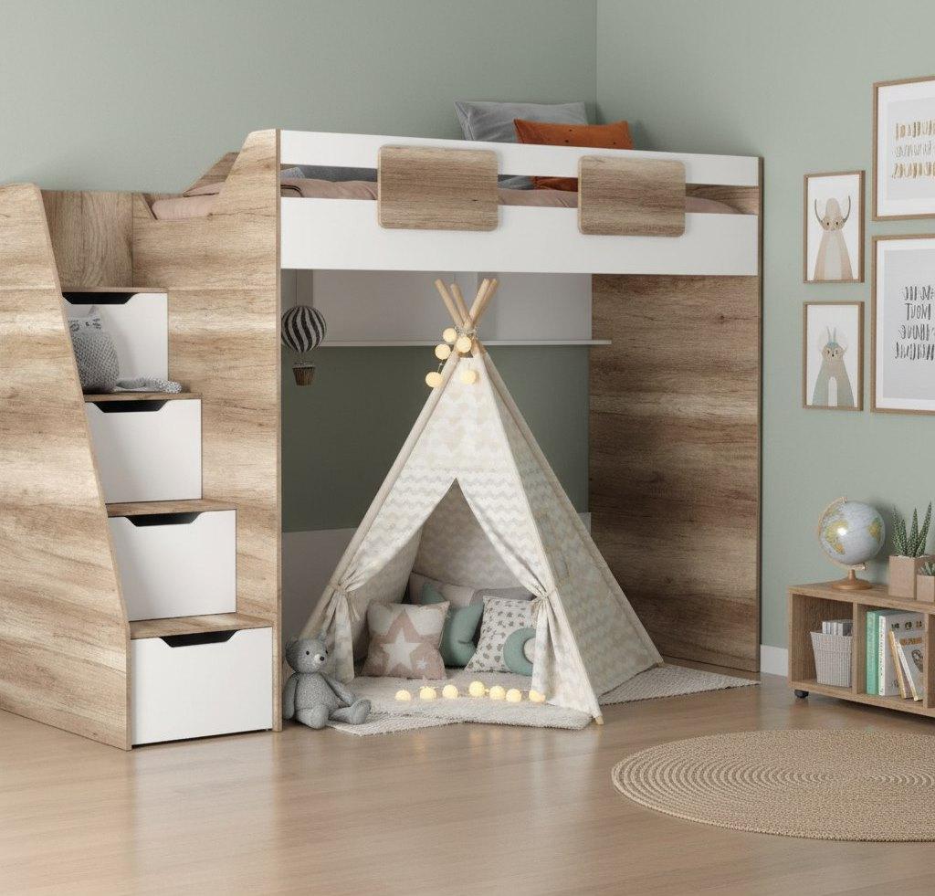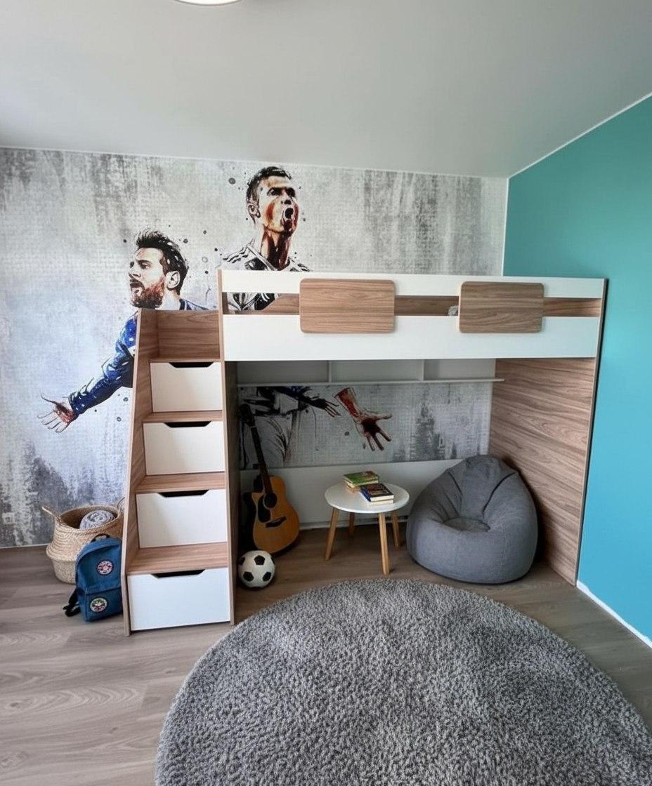 Вместо них - цельный и прочный настил из ЛДСП, который выдерживает сверхвысокую нагрузку и позволяет расположиться даже взрослому с ребенком.
