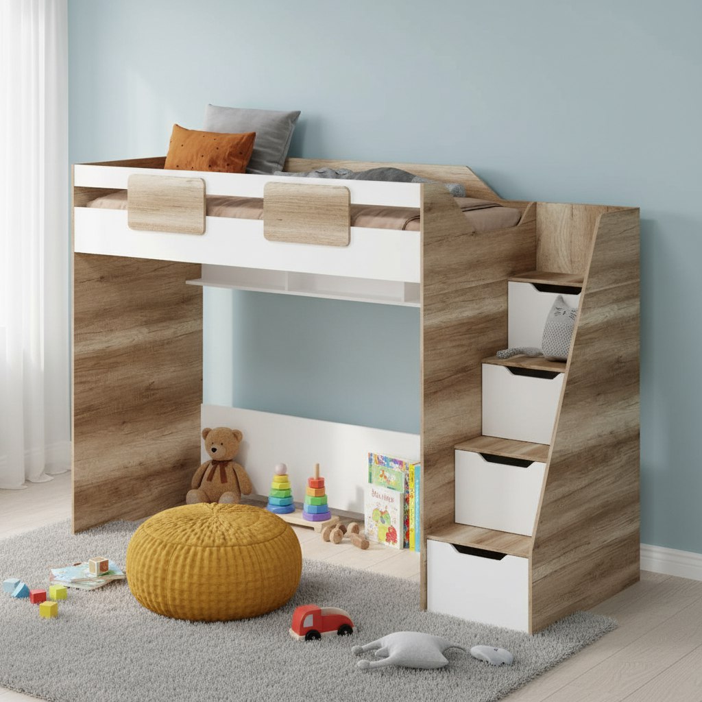 Высокая нагрузка на спальное место. Прочные ящики. Высокий, безопасный бортик |