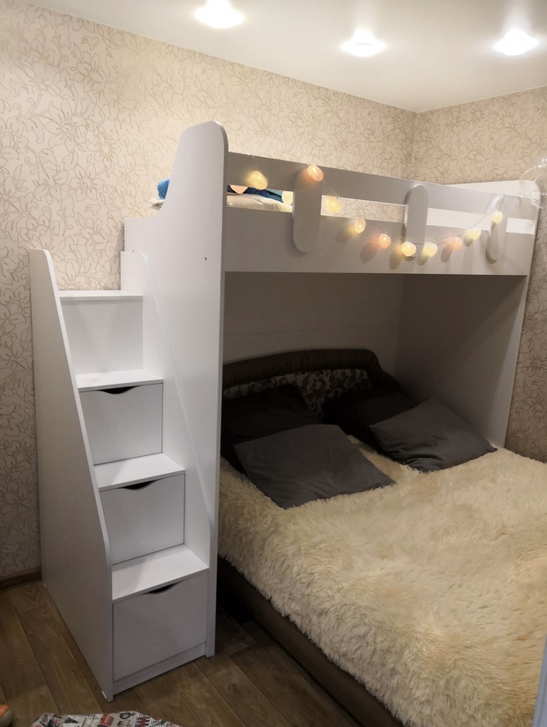 Вместо них - цельный и прочный настил из ЛДСП, который выдерживает сверхвысокую нагрузку и позволяет расположиться даже взрослому с ребенком.