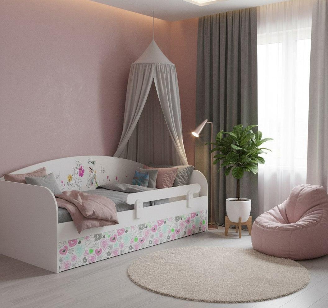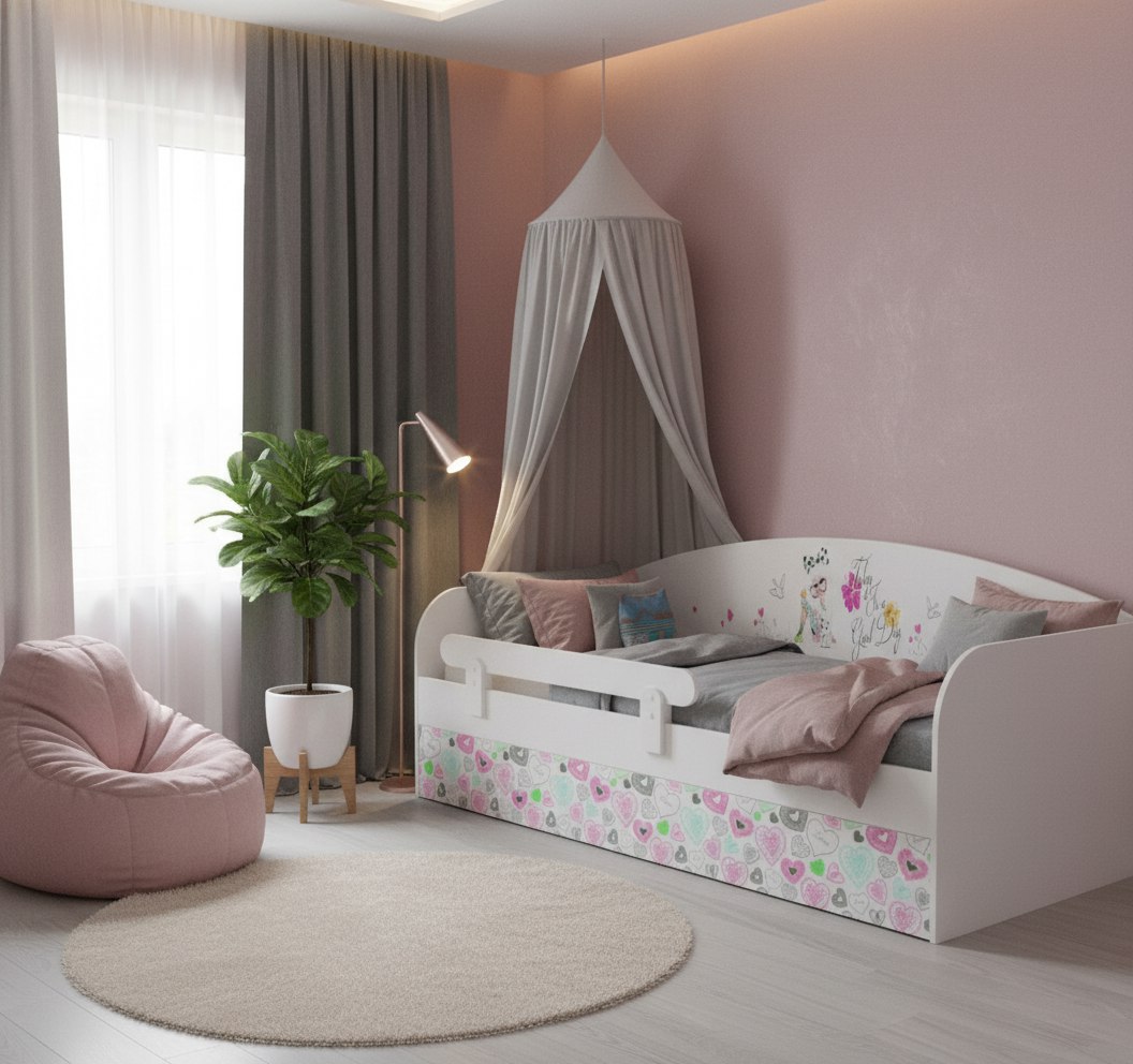 Мебель выполнена из сертифицированного, качественного, экологически чистого ЛДСП Е0,5 в белом цвете с дизайнерским принтом