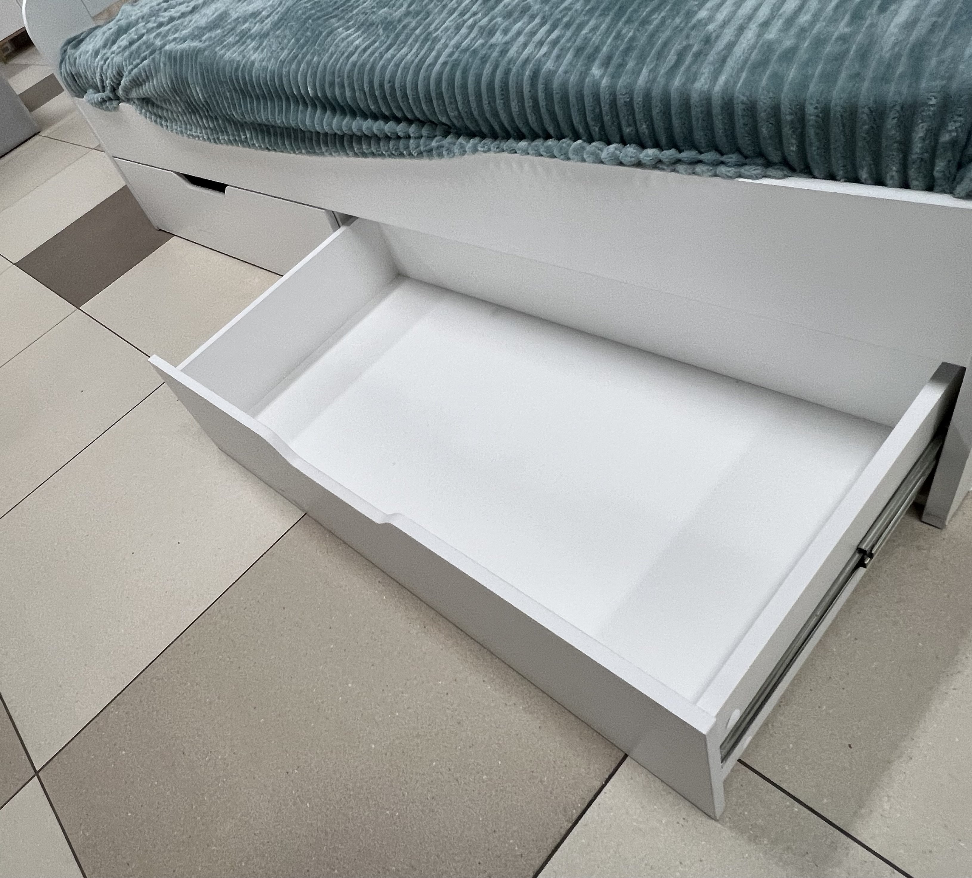 Высокая нагрузка на спальное место. Полновыкатные прочные ящики!