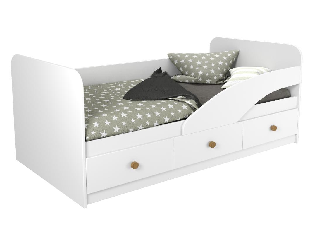 В кровать встроены три выдвижных ящика для белья и игрушек.