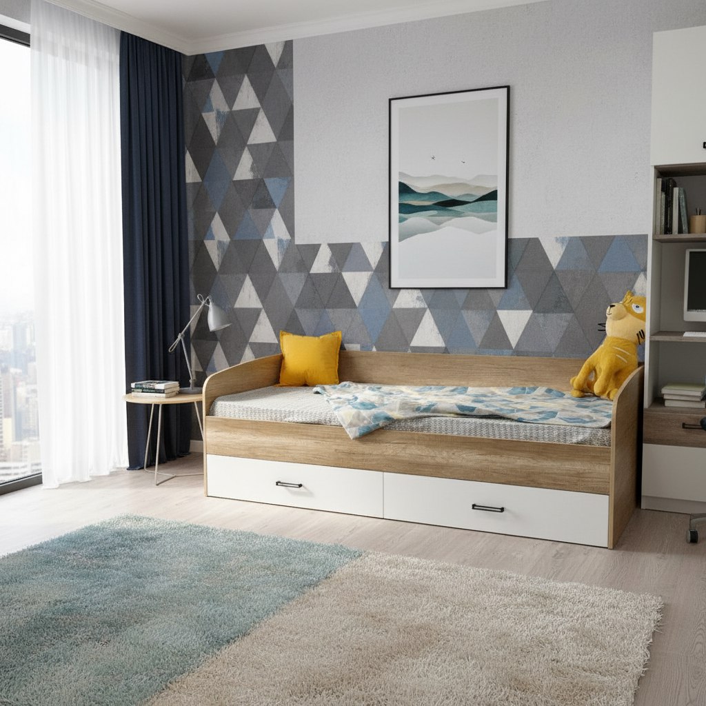Кровать Твой Стиль с увеличенным спальным местом идеальное решение для комнаты подростка.