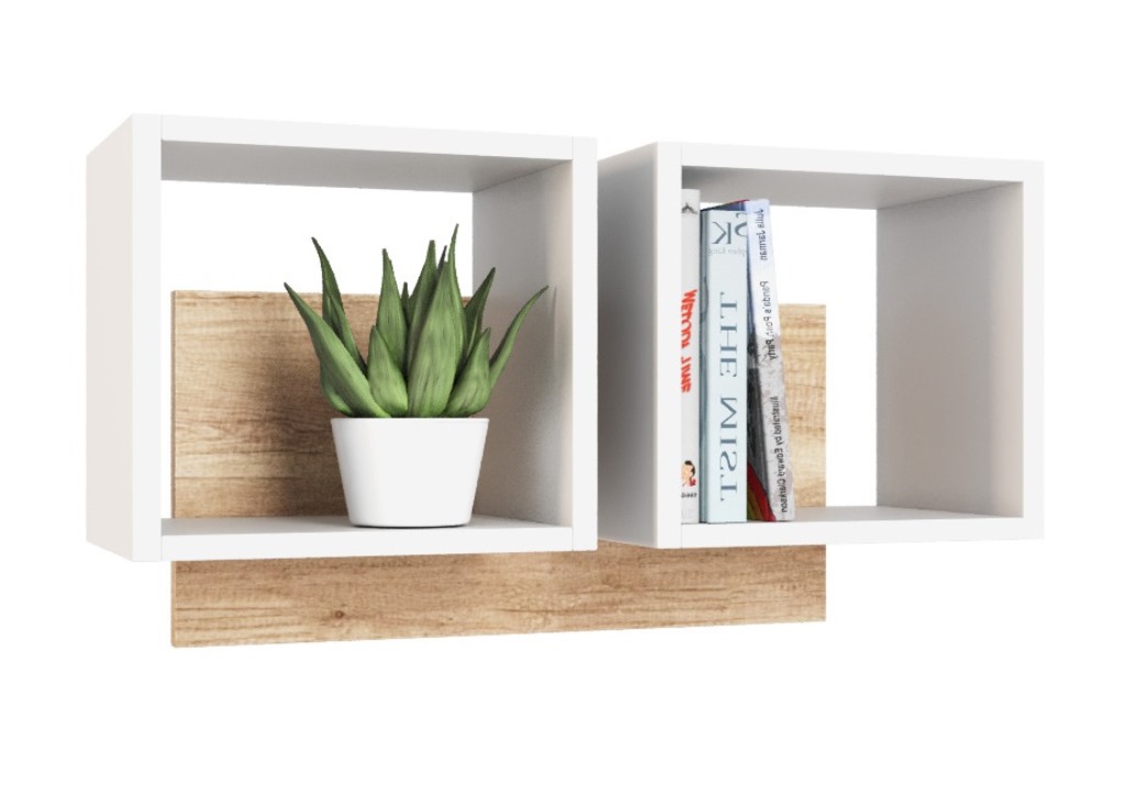 —Полка настенная Квадрат-2 (дуб каньон+белый) 744 мм