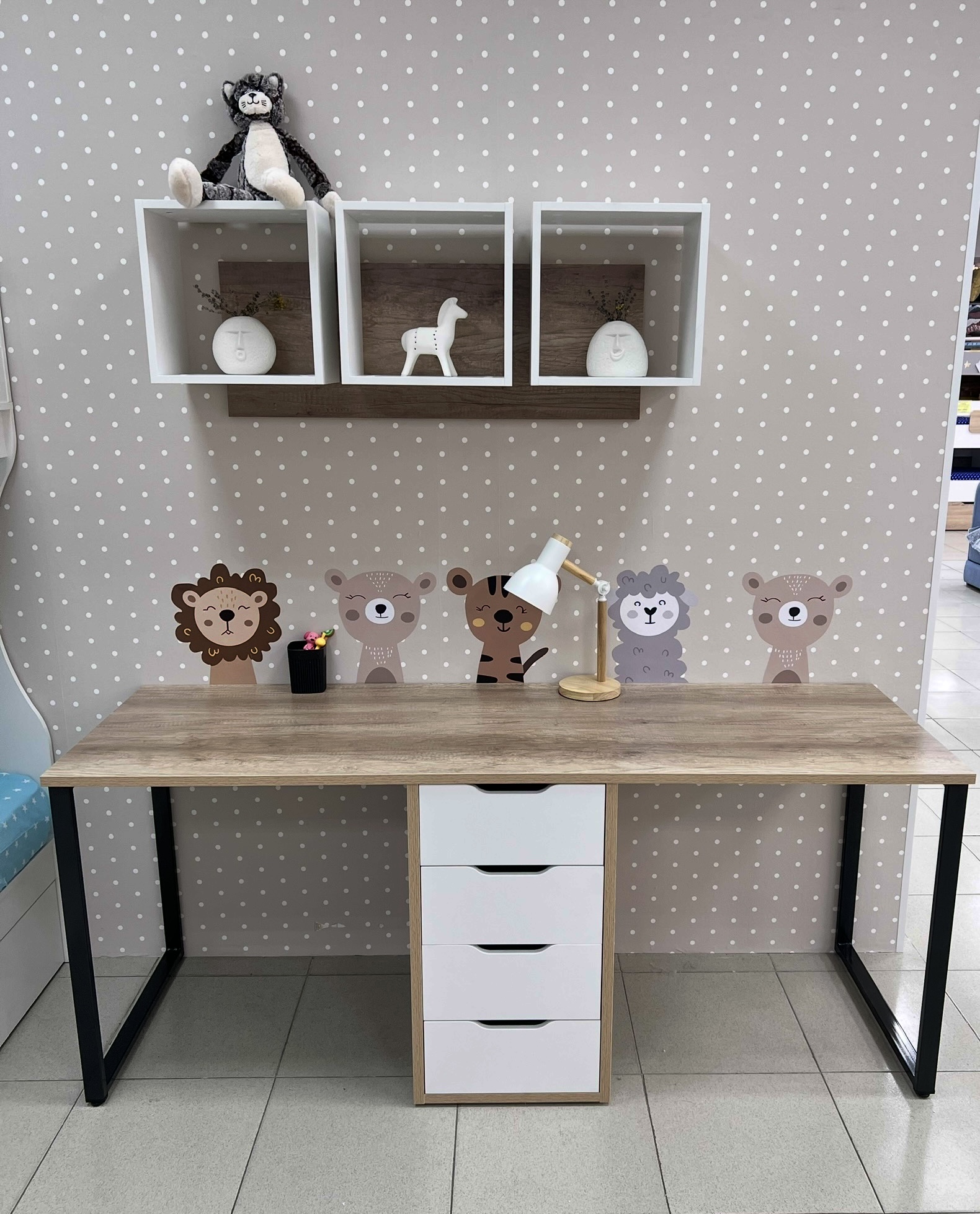 Полка выполнена из сертифицированного, качественного, экологически чистого ЛДСП 16 мм класса Е0,5 в сочетании цветов дуб каньон + белый.
