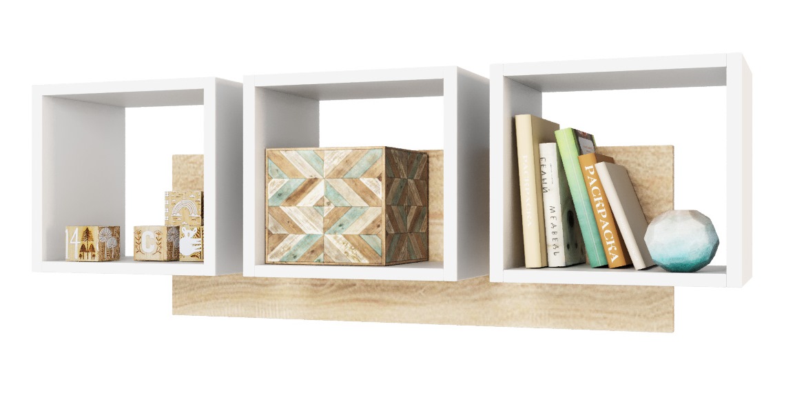 —Полка настенная Квадрат-3 (дуб сонома+белый) 1136 мм