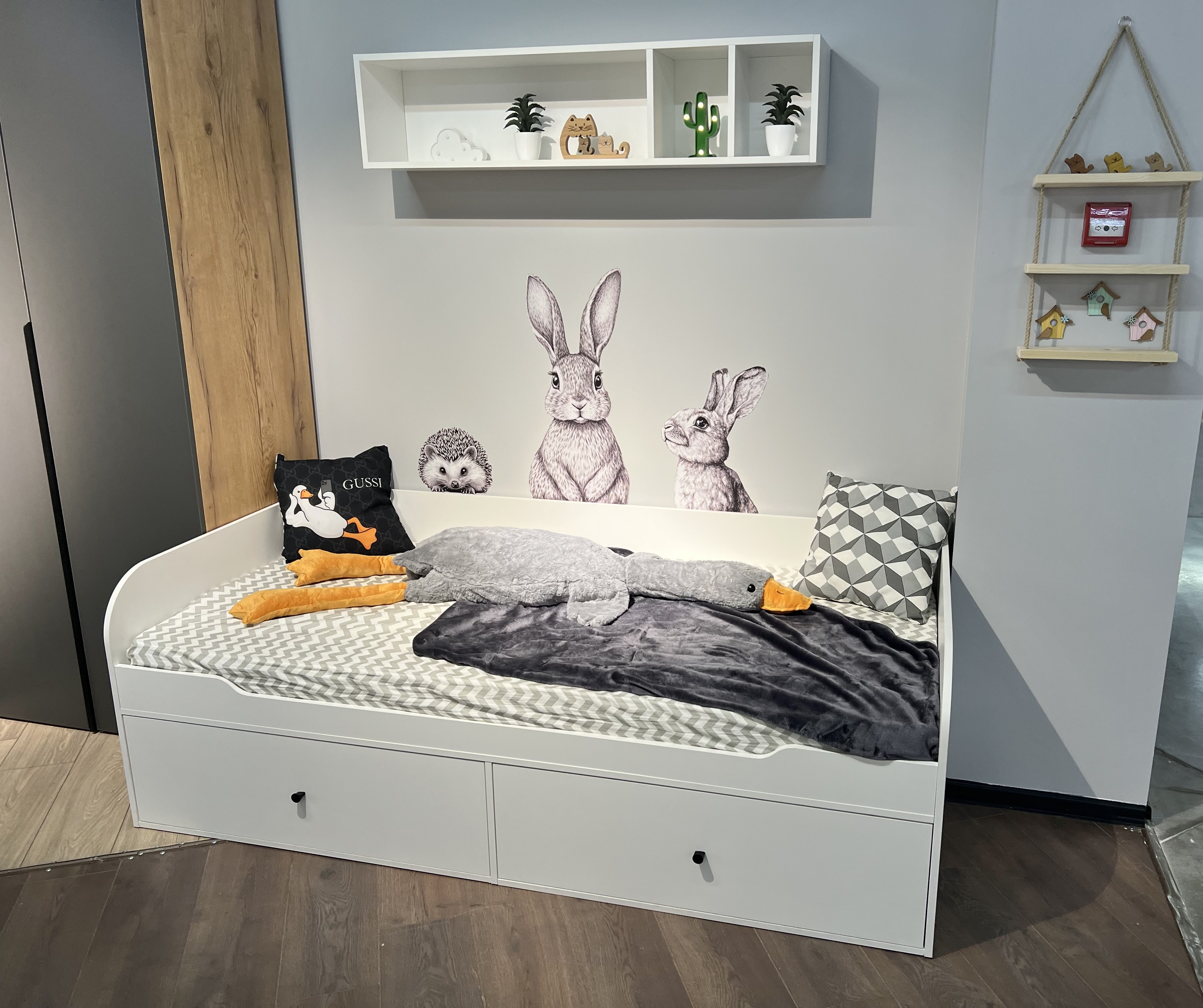 Полка выполнена из сертифицированного, качественного, экологически чистого ЛДСП класса Е0,5 в белом цвете.