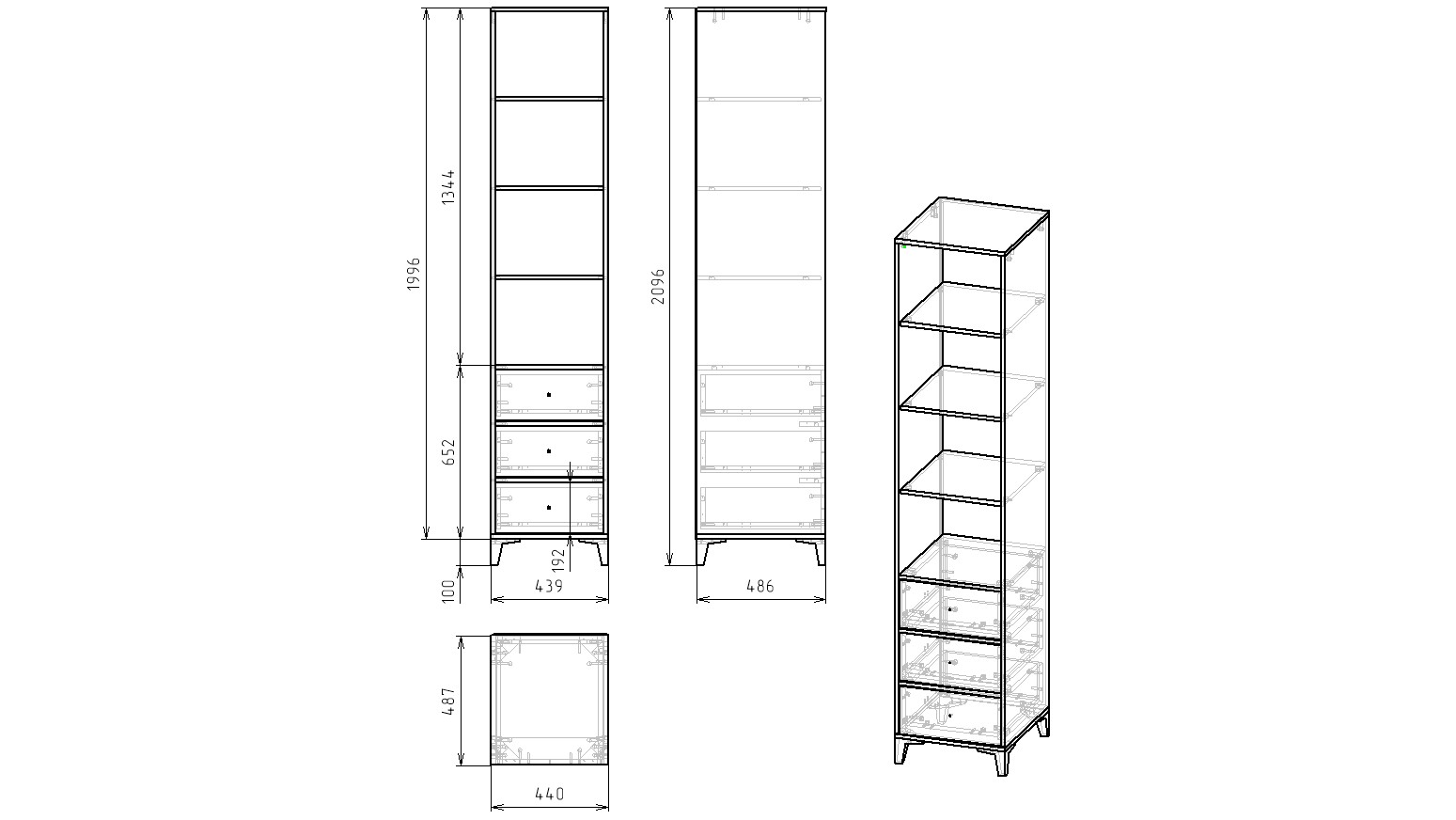 Габариты пенала: ширина 440, глубина 487, высота 2096 мм