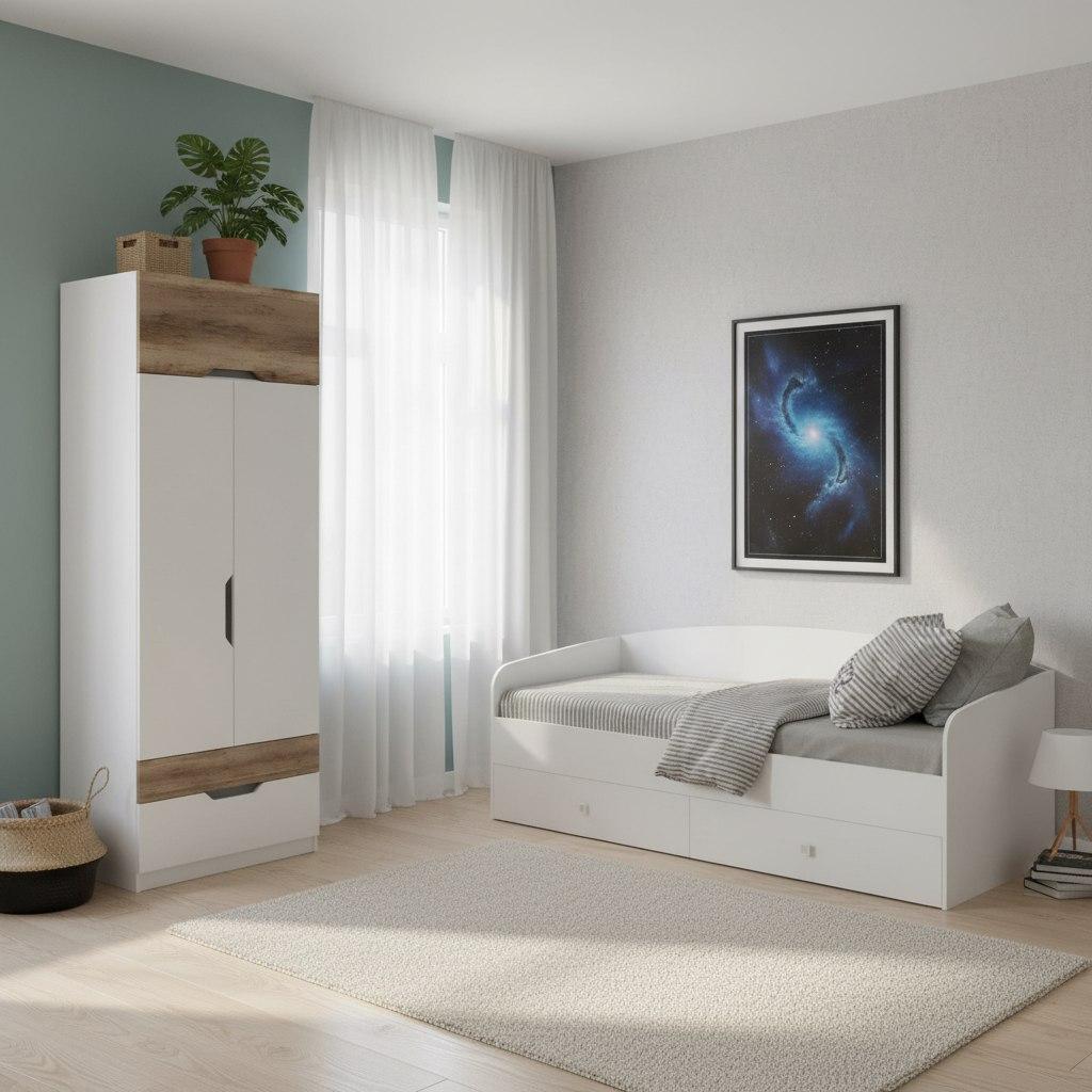 Мебель выполнена из сертифицированного, качественного, экологически чистого ЛДСП Е0,5 в сочетании цветов дуб каньон + белый