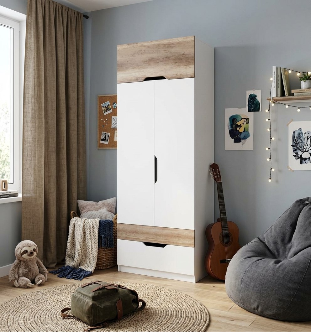 Идеально вписывается в детскую комнату, шкаф очень практичный и вместительный, по своим габаритам отлично подходит и для небольших комнат.