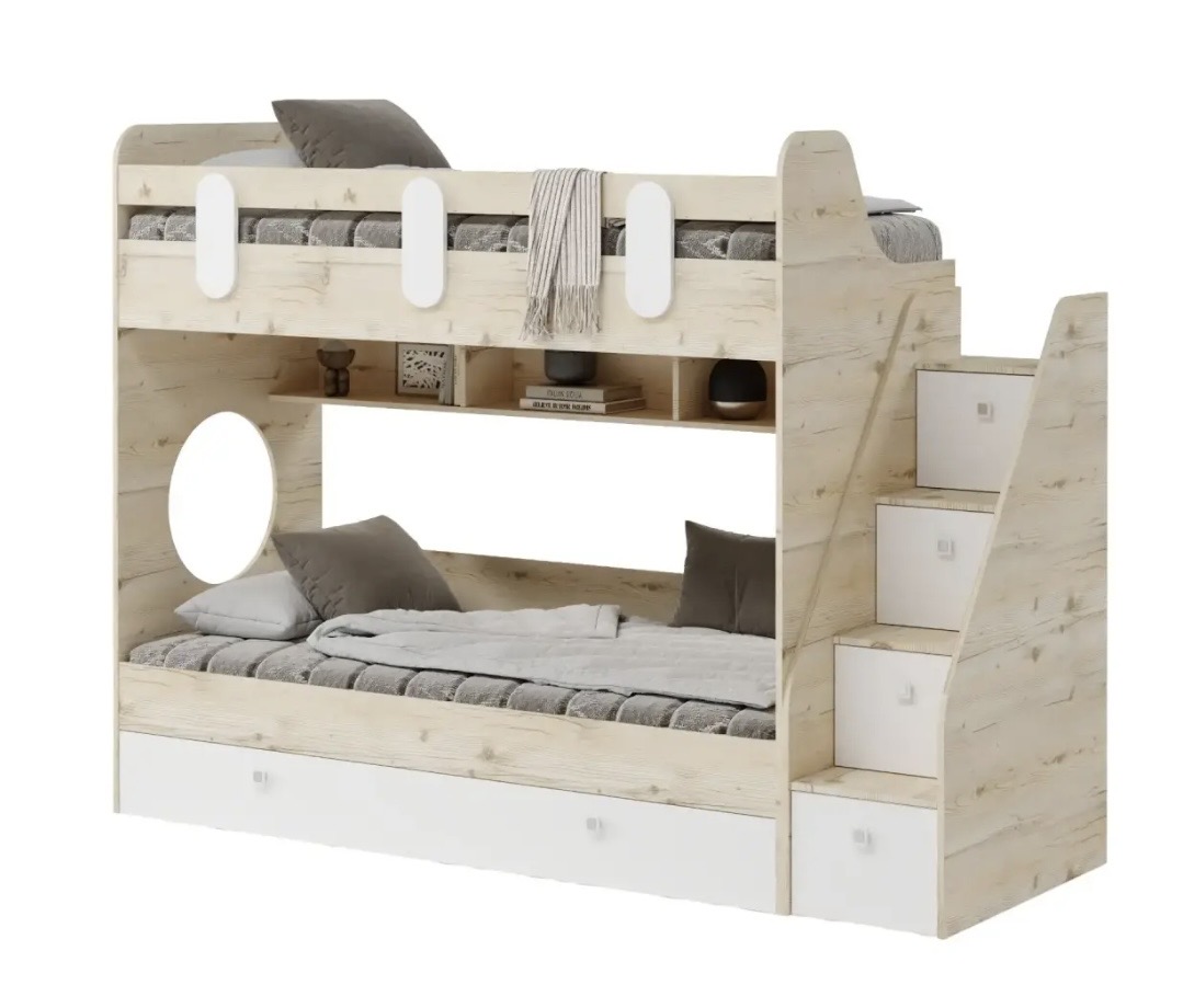 Прочная, стильная кровать Фортуна-3 с удобной, безопасной лестницей и комфортной высотой.