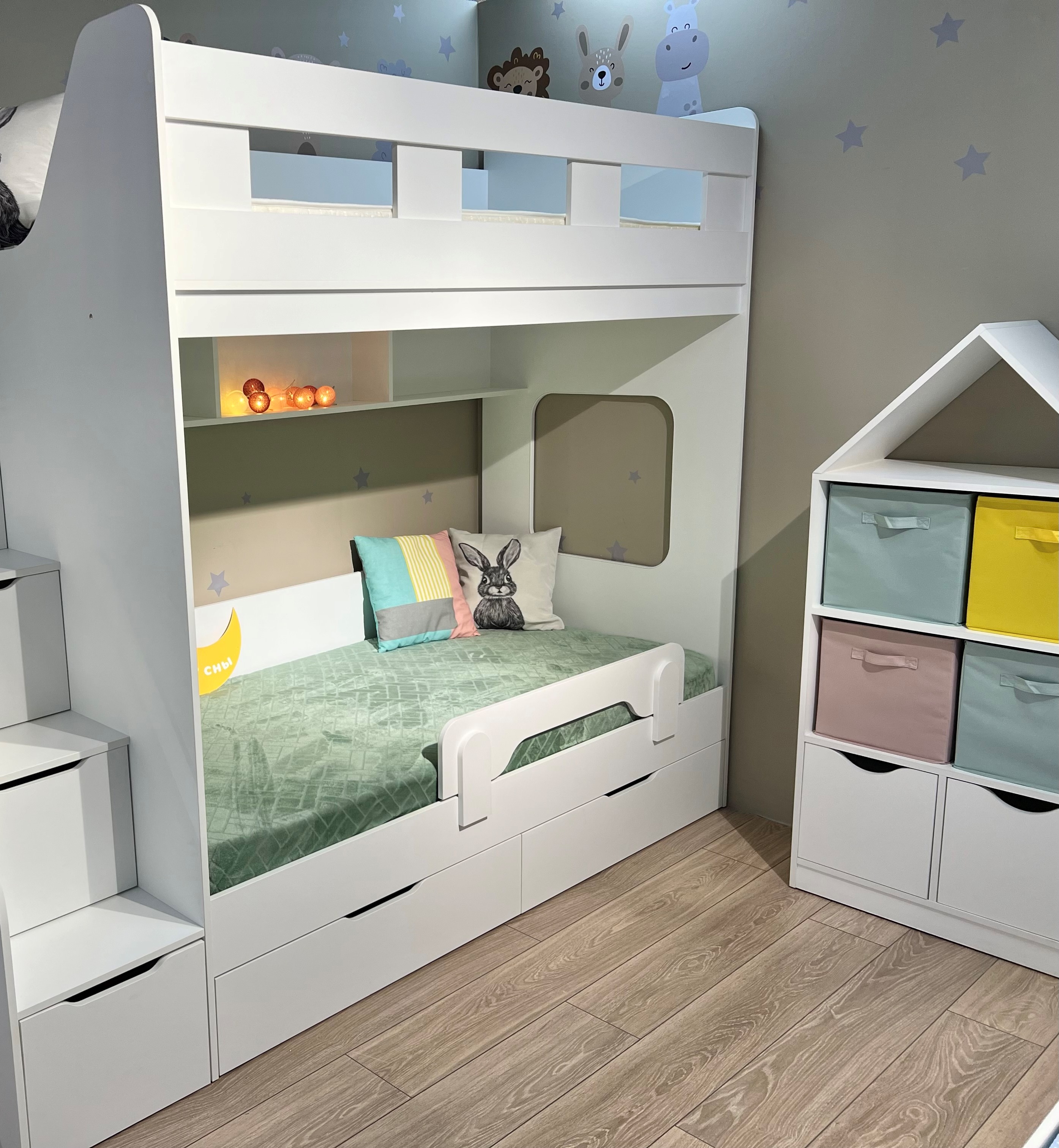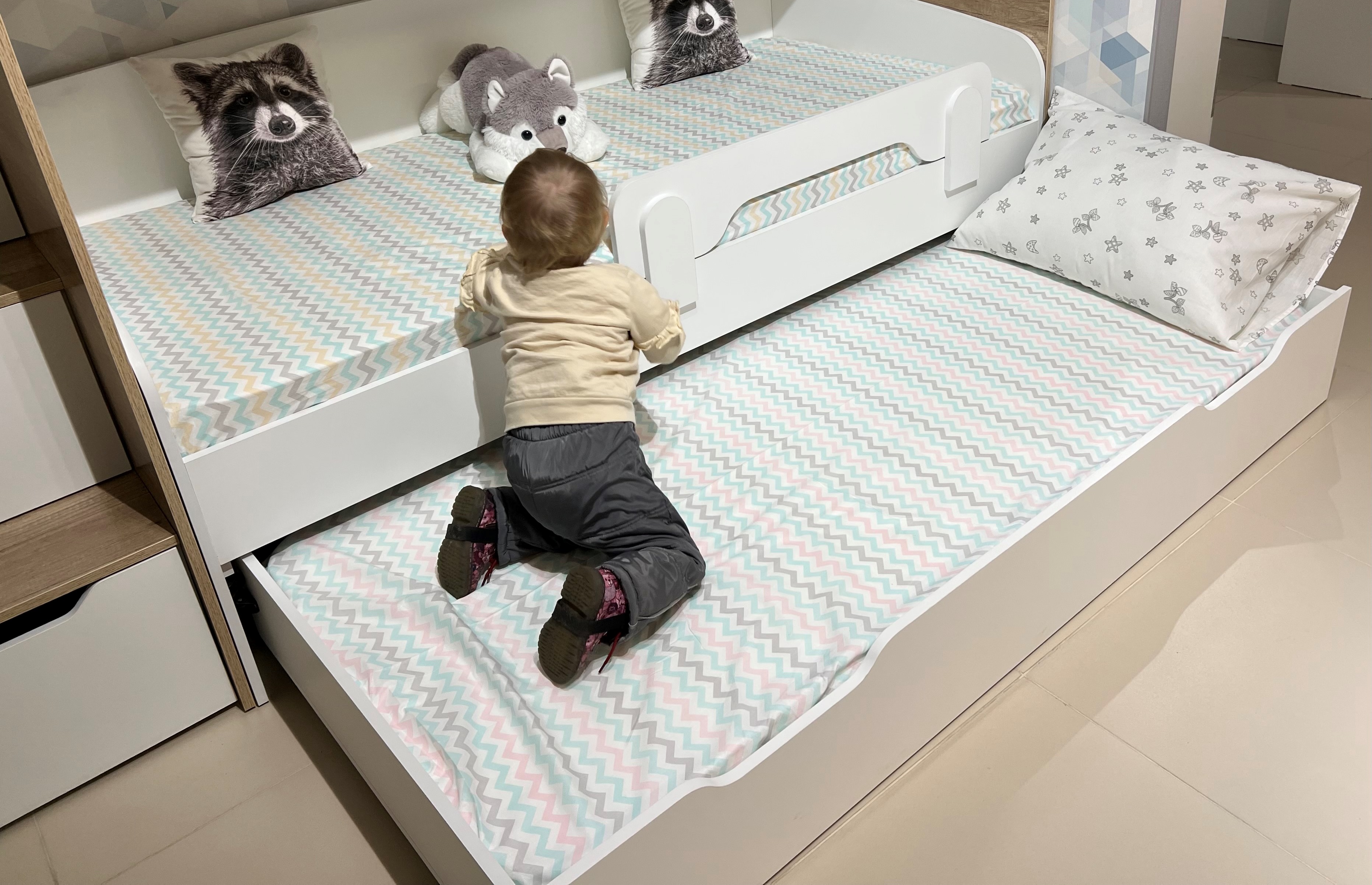 - Максимальная экономия пространства: кровать освобождает место для игр и учебы, сохраняя при этом уют и комфорт.
