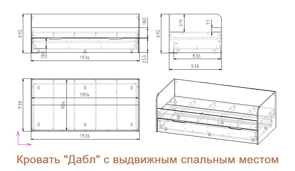 Спальные места кровати "Дабл" с дополнительным выдвижным спальным местом: